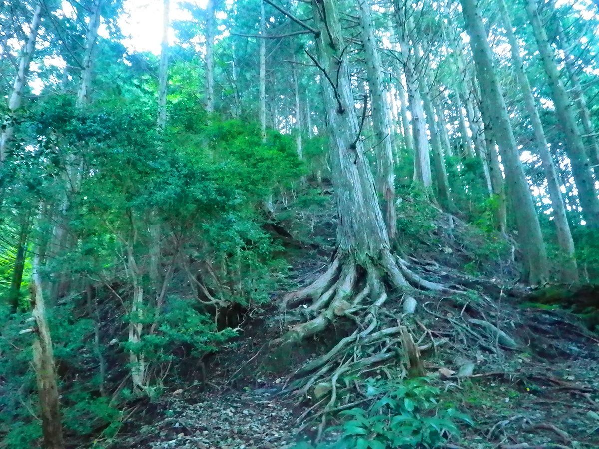 大塔山への登りの序盤は滑りやすくてガレ場や木の根っこの少し急登地帯を登っていく