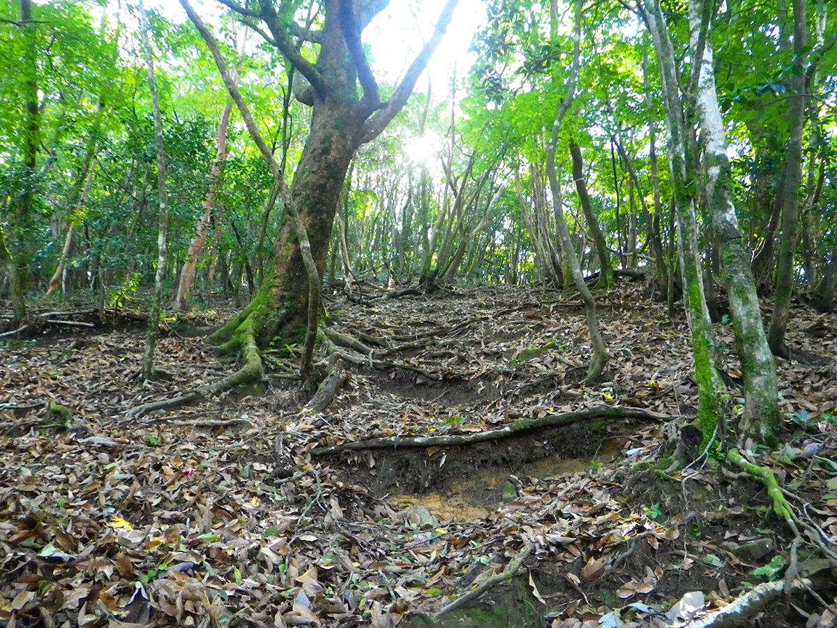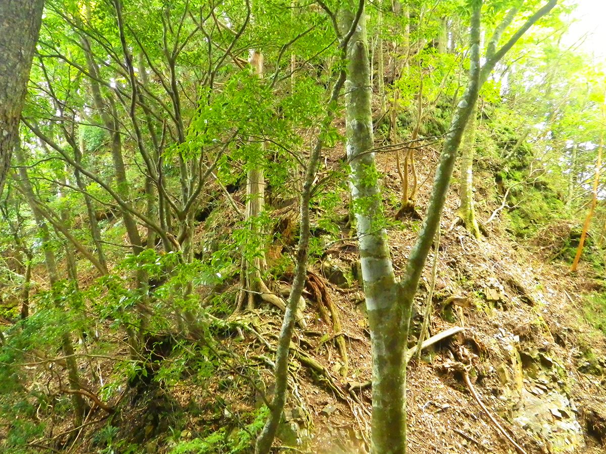 尾根道だけど踏み跡などがなくて無理矢理草木をかきわけて進まないといけないところもあり