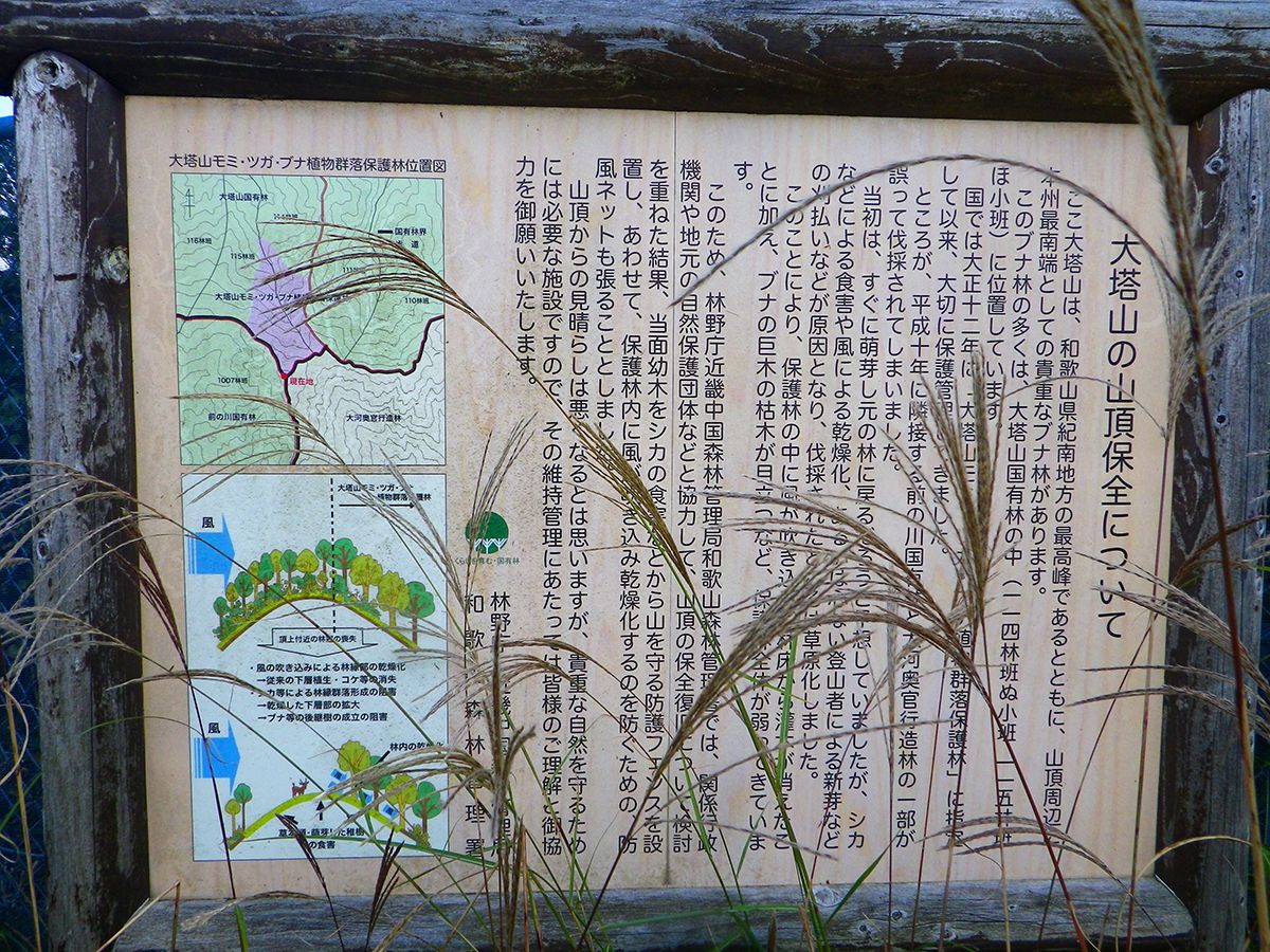 大塔山の山頂保全についての看板があったけどススキで邪魔になっている
