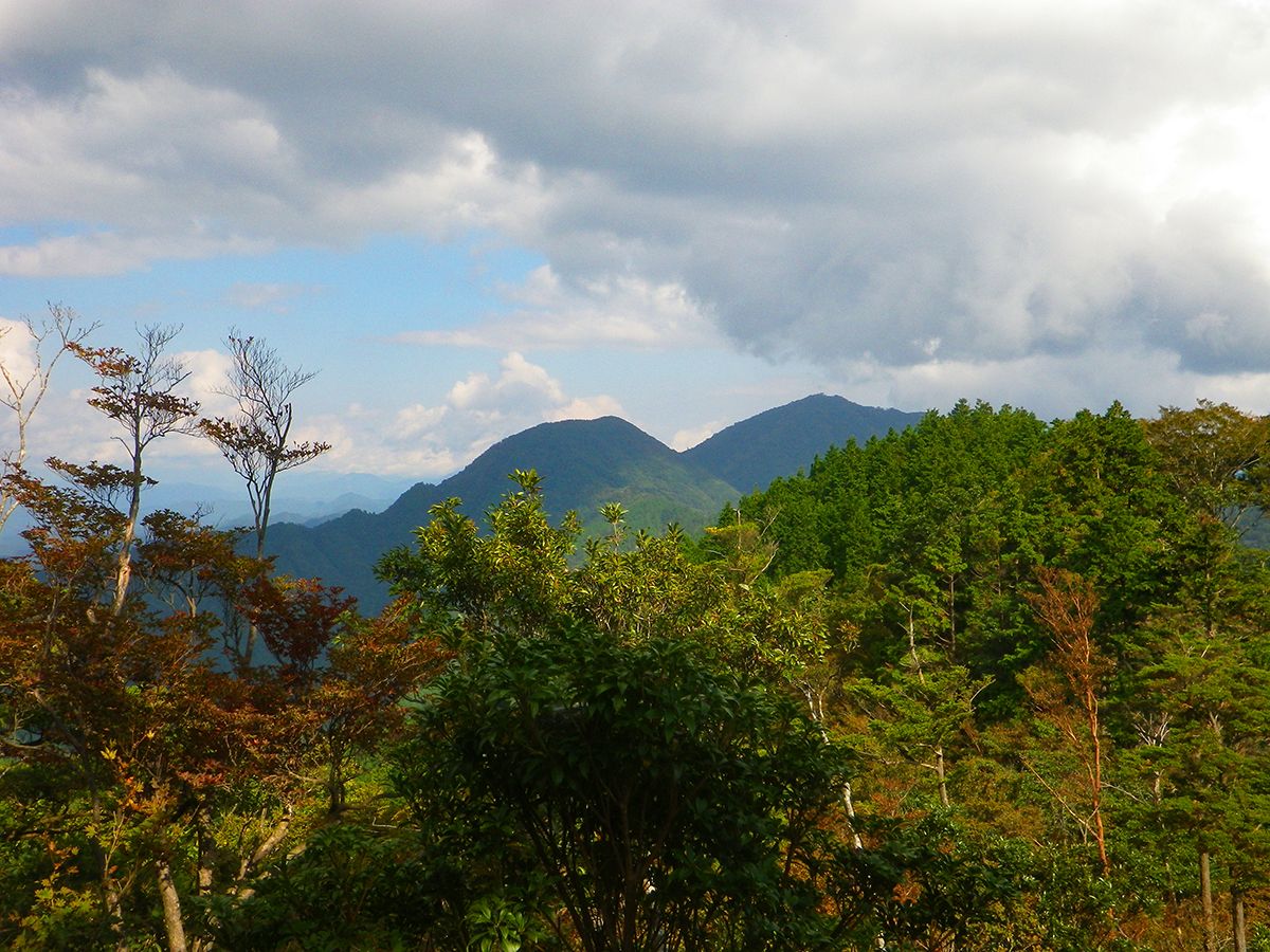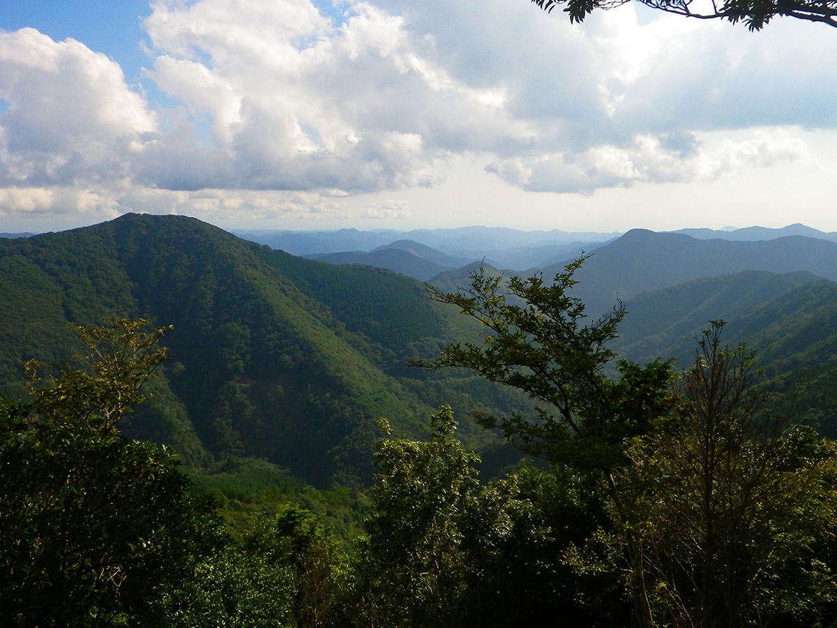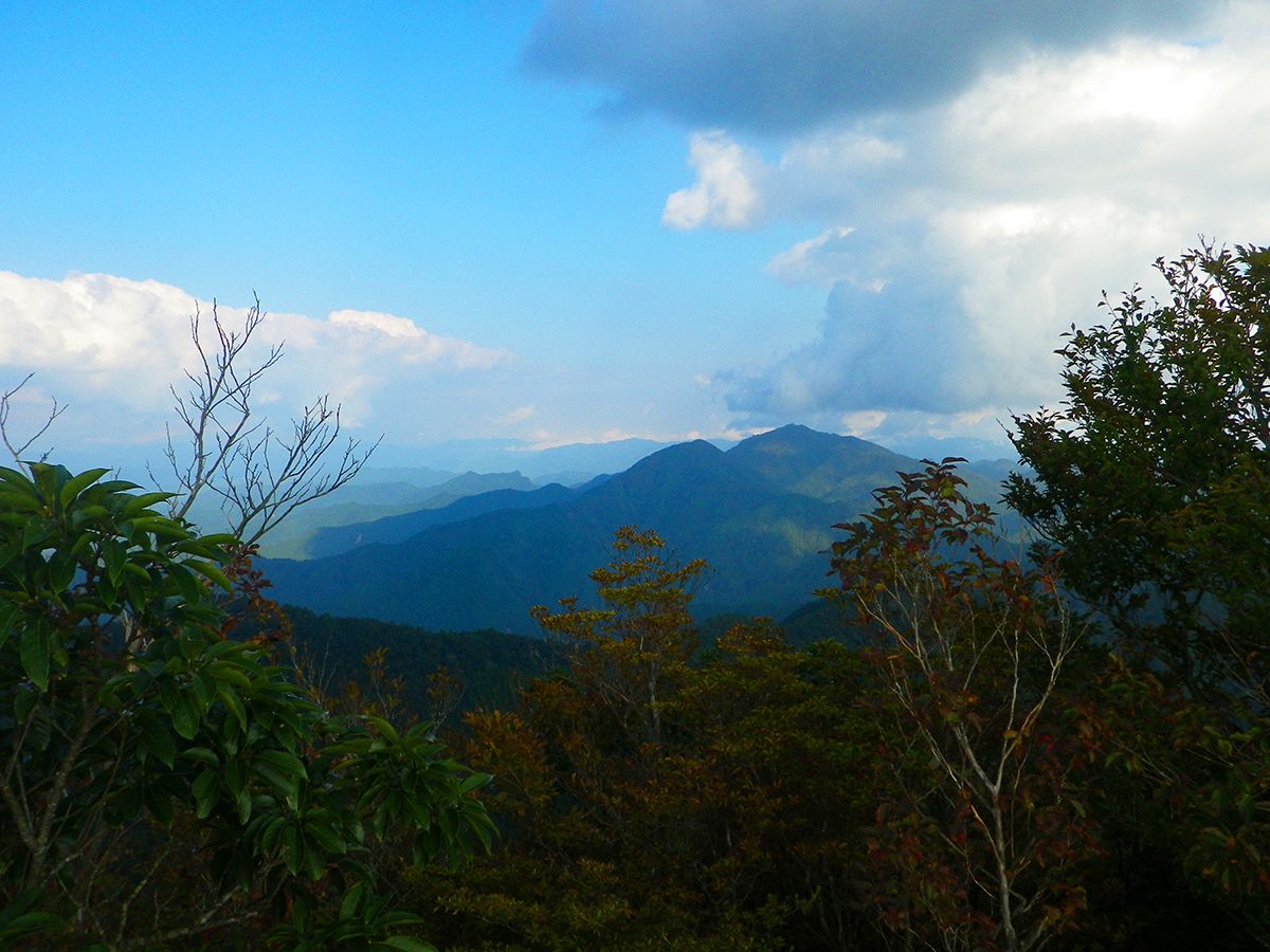 東側の展望。最初に登った大塔山が見える。あんなところからかなり歩いてきたとわかる
