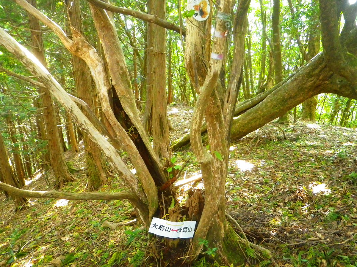 ここで大塔山と法師山の看板があったけど、どうして文字が反対に向いてるんだろうか!?方向は合ってるんだけどね