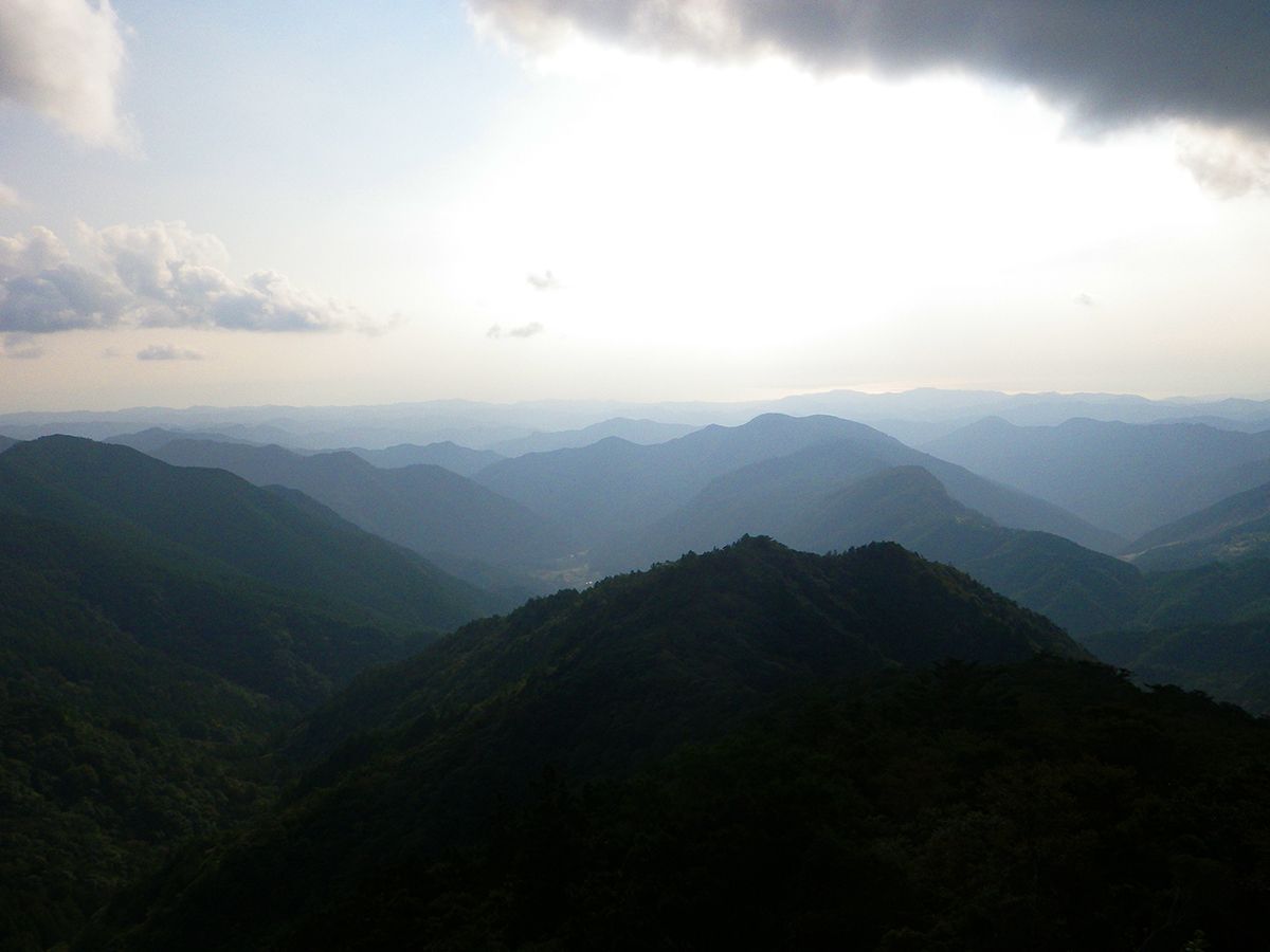 北側の展望。本当なら大峰山脈も見えるんだろうけど霞んでみえない