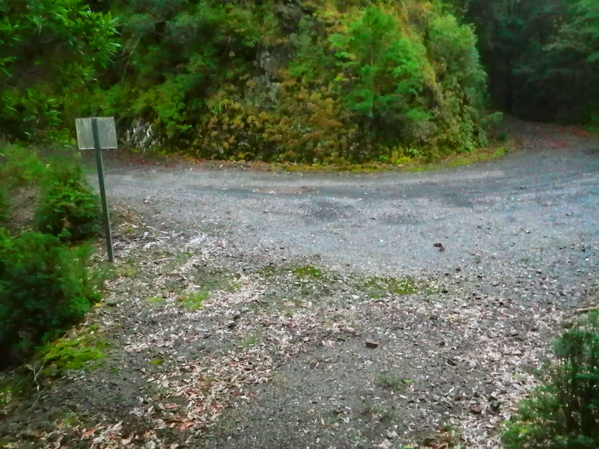 大塔山登山口に到着。ここで林道から離れて左へ曲がって入山する