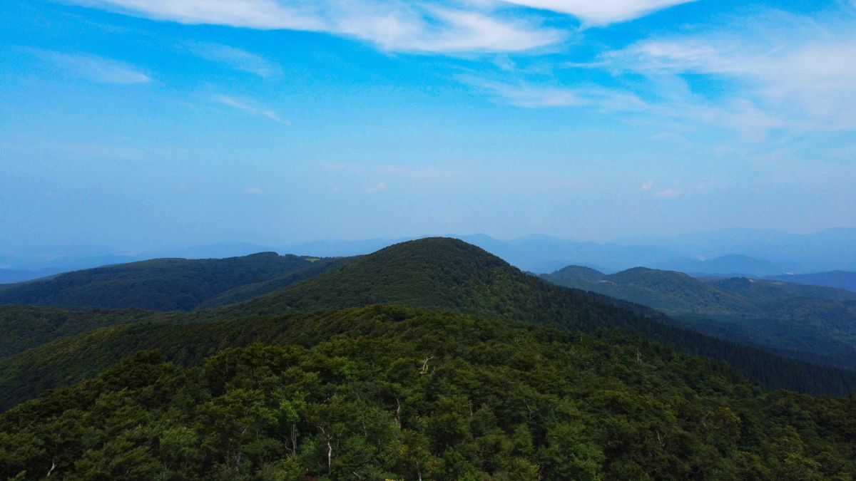 今回の鳥取経由のメインの登山はこの扇ノ山です。前々から扇ノ山には登りたかったのですが、アプローチが遠いのでなかなか行く機会がなかったのです。最短ルートである姫路公園コース登山口から登ろうか迷いましたが、アプローチ的に河合谷登山口からのほうが行きやすかったので今回はこのコースで登りました。距離的には3.2kmと長い感じがしましたが、ほとんどがなだらかな道が続いているので時間的にはかなり早くて距離もすぐに稼げたと思います。ただ、こっちのルートは1273mのピークを登ってから一旦標高50mほど下って扇ノ山の登りがあるので、下山時の登り返しが面倒な感じです。それ以外はほとんどがなだらかな登山道で整備されているので歩きやすかったです。扇ノ山の山頂は氷ノ山が見えるくらいでほとんど展望はありませんでした。ここでもドローンで空撮をして撮影しておきました。扇ノ山の山頂にある避難小屋は立派でしたが、登山者が多くて入りませんでした。本当はお昼ご飯をここで食べようと思ったのですが、鳥取県から訪れた人から鳥取市内まで1時間ほどらしいとのことで、このまま鳥取市まで行ってラーメン屋でも行くことにしました。念願の扇ノ山に登れたので満足した山行になりましたが、できれば積雪期に登ってみたいです。ただ、アプローチまでの林道が細くてガードレールもなく、かなりヤバイ感じなので積雪しているとアプローチまで車で行けるかどうかが問題だと思います。