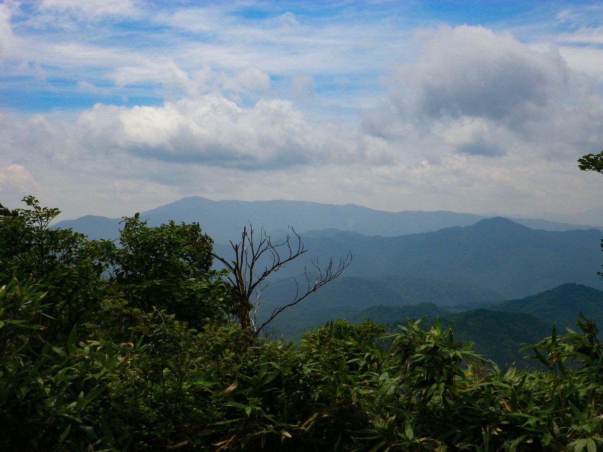 扇ノ山頂上からのちょっとした展望。左側の高い山は氷ノ山かな!?