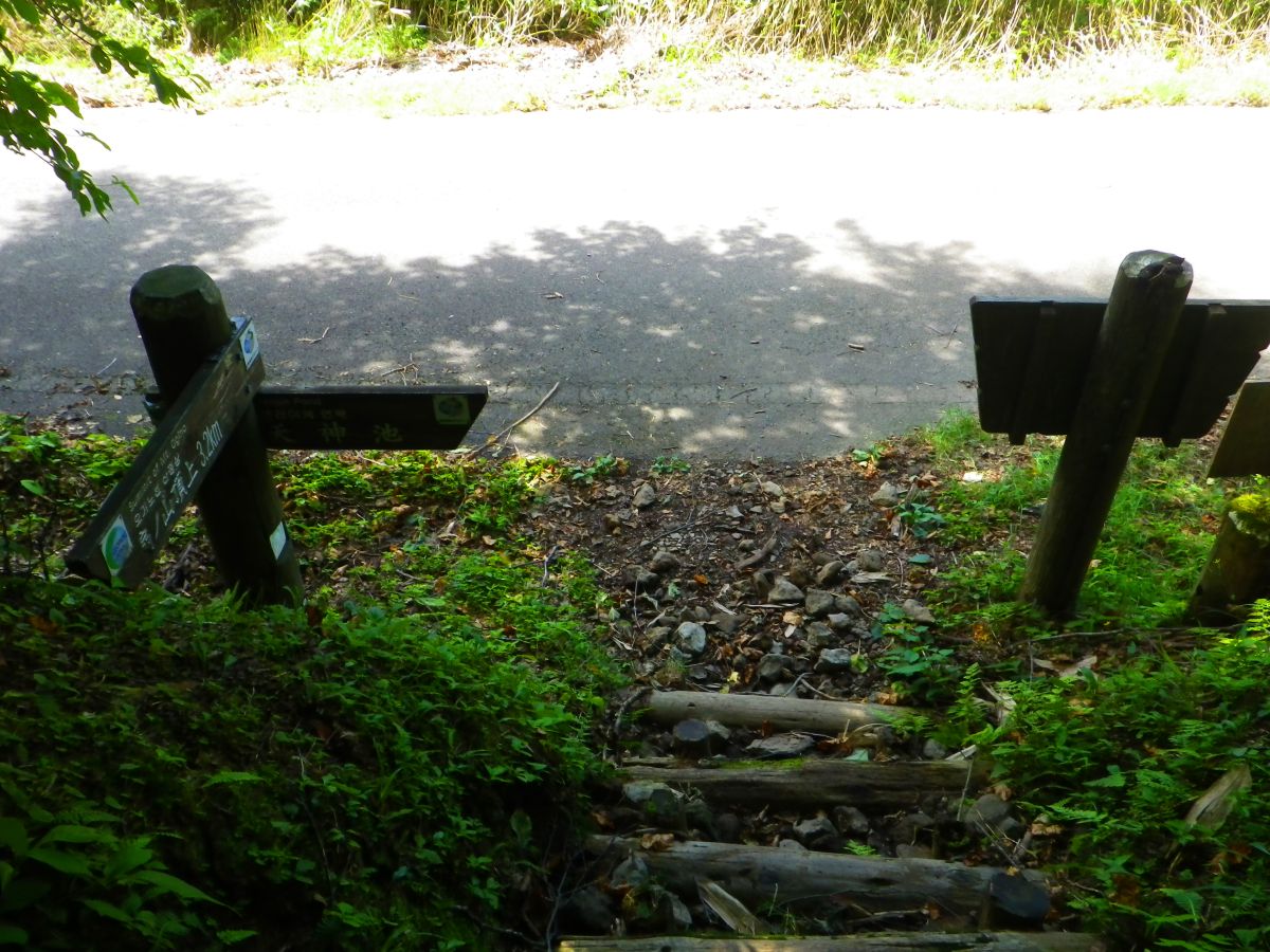 ここが距離の中間点で頂上までと登山口まではどちらも1.6km地点。標高は稼げてないのでここからは登りがはじまるんだろう