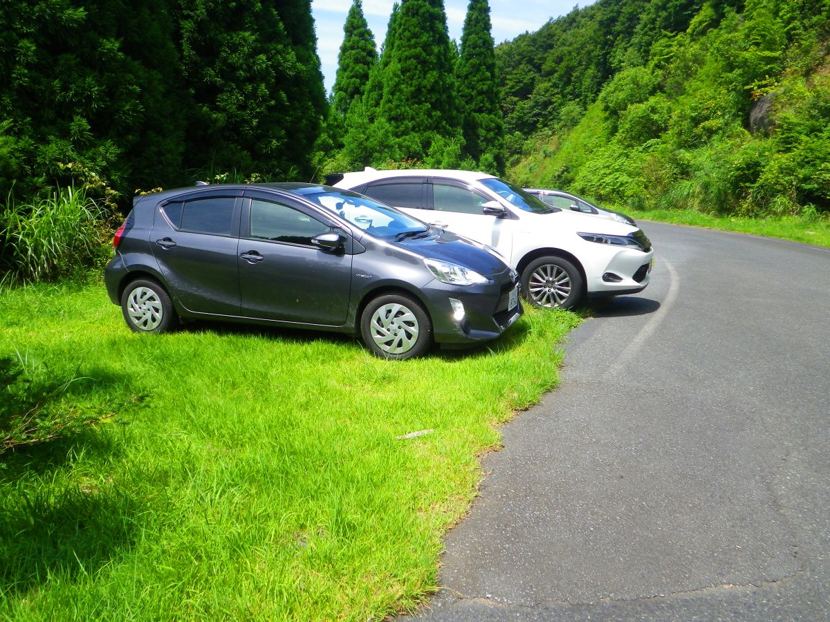 水とのふれあい広場付近には駐車場があるけど満車だったので、隣の芝生に駐車してスタート