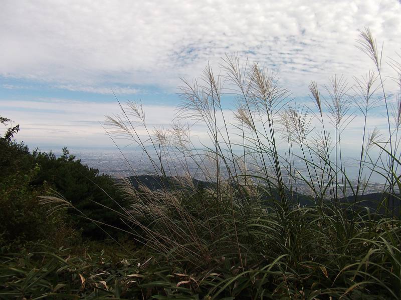 最高峰の手前からは大阪方面が一望できるけどススキが少し邪魔だね