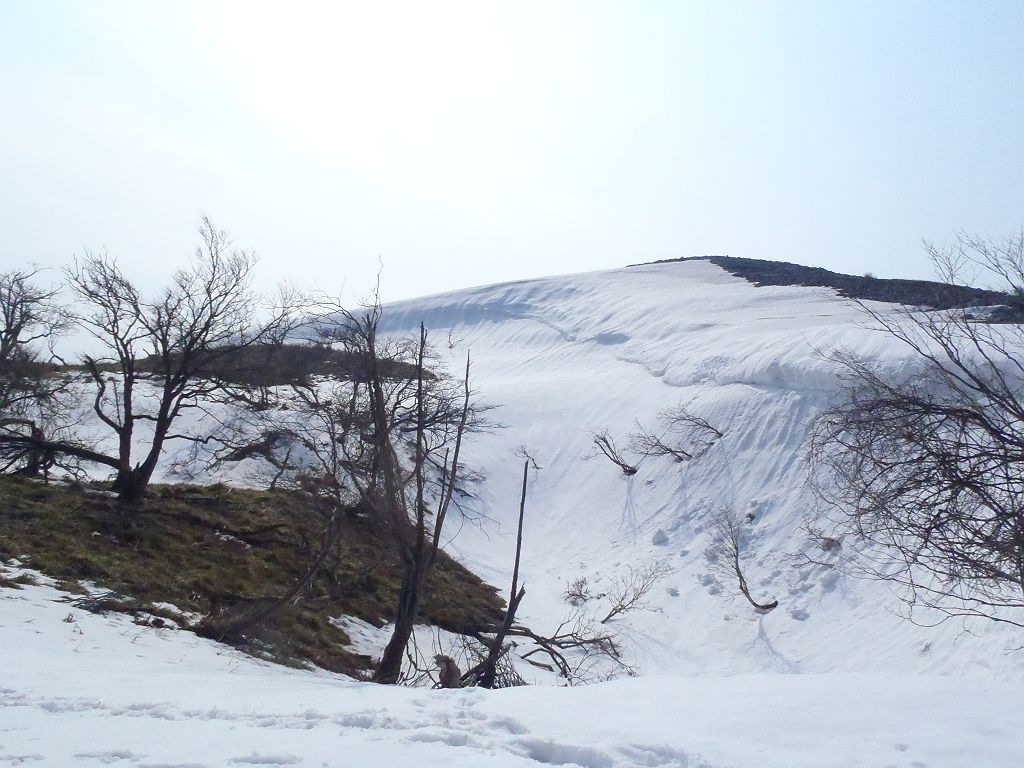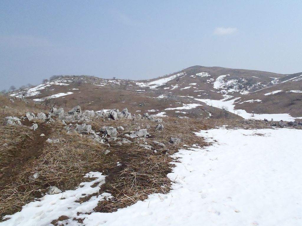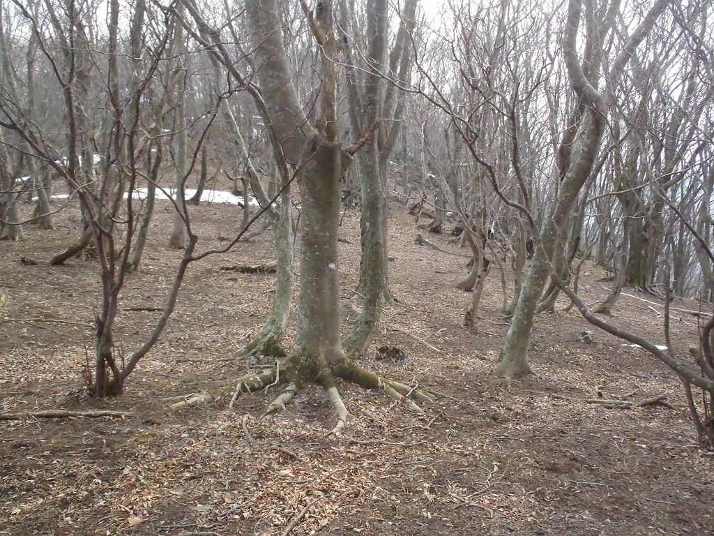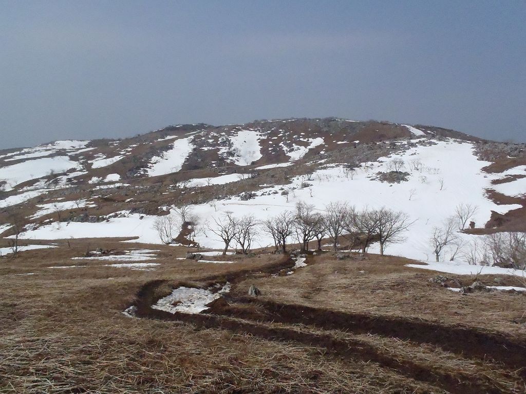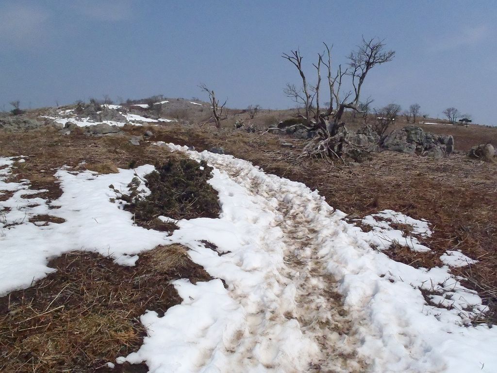 伊吹山の横にある鈴鹿の霊仙山は以前から気になっていたのですが、なかなかいけずに前日のいきなりの誘いがありいくことになりました。今回は女性も含めてのことなので、ちょっと心配な感じがしましたが、結構イケイケな感じの人だったのでよかったです。登山道は雪解けの泥だらけで重かったところもありましたが展望は良し。ただ、かなり霞んでいたので周りの山々は見えにくかったです。しかし、7合目にいくとまるで別世界!その景観はまるで北アルプスのようでした(乗鞍岳や御嶽山、白山によく似た感じでした)。残雪っていうのがおそらくさらに魅力を引き出していたんだと思いますが関西でこんな景観が見れるところがあるなんてびっくりでした。飯くっていよいよ稜線歩きですが、これがグッドな景色みながらなのでまた気持ちいい!!しかし、ところどころ岩と岩の間にずぼずぼハマってこれに注意を払いながらだったのでここで結構時間ロス。しかも体がもっていかれそうな風が吹き始めました。笹峠までたどり着いて沢の登りかえしを少しでも回避しようと、破線部分のルートにいったら、泥地獄。泥で滑る滑る状態で、3人とも泥だらけに危ないと判断してそこを登りかえすことに・・・なんかおおちゃくしようとすればこういう目にあってるような^^;結局正規ルートで今畑登山口まで下山。問題はまたそこからでした。歩いているおじさんに、落合ルートは荒れていると聞いていましたが、最初はこんなもんかと思いきや、相当な荒れようであれこれ考えながら進むしかありませんでした。最悪左側に尾根が見えていたので最悪のシナリオとしては尾根に無理矢理直登も考えてはいましたがなんとか汗拭峠に戻れました。結構、霊仙山はあなどっていた部分がありましたが、この周回ルートは結構なもので、この山行は先週の釈迦ヶ岳に引き続き波乱万丈でした。