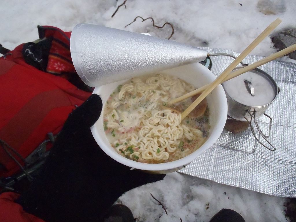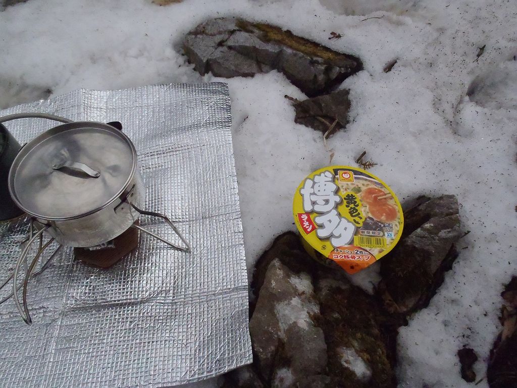 山で食べる懐かしき黄色い博多はめっちゃ美味かった!!