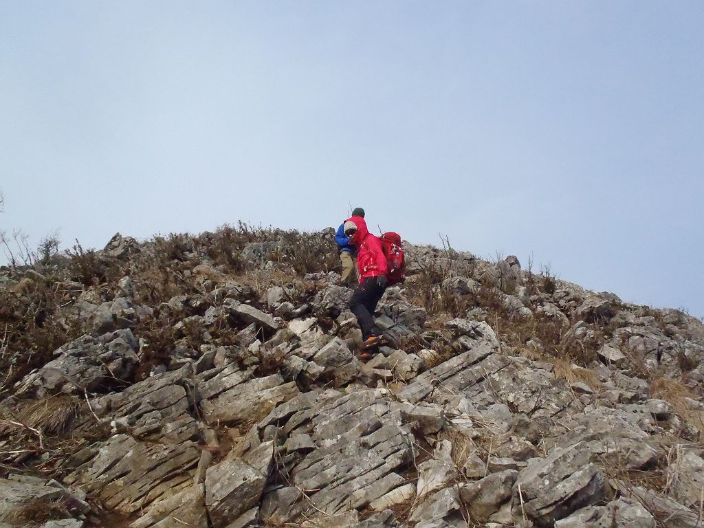 展望台を過ぎたあたりからは一気に下るが爆風がふいていた