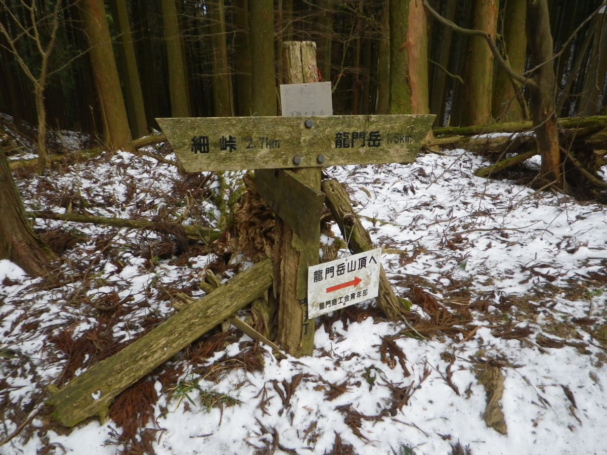 龍門岳山頂と書かれた道標があって滝のほうからだともう少し距離があるのね