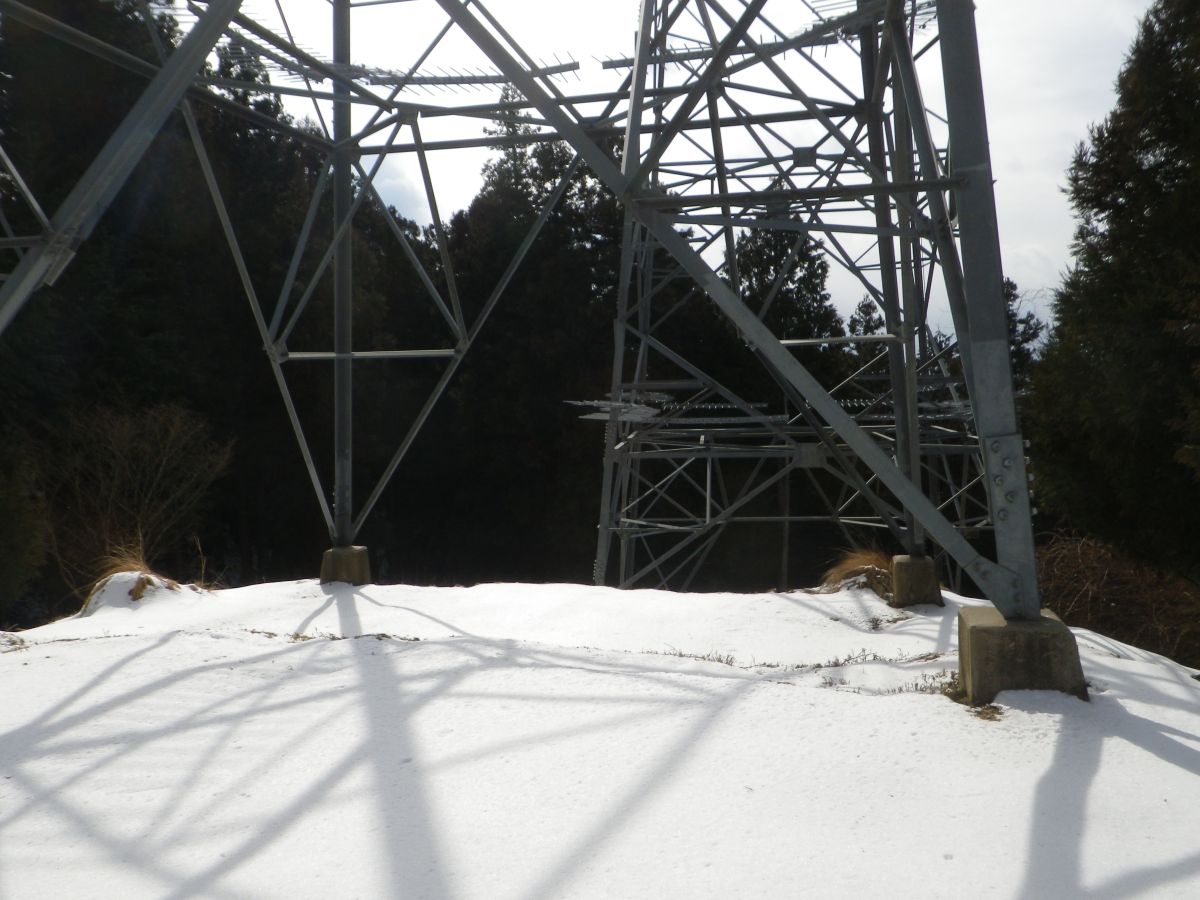 ここの鉄塔くらいからズルズルと滑るのでアイゼンを装着した