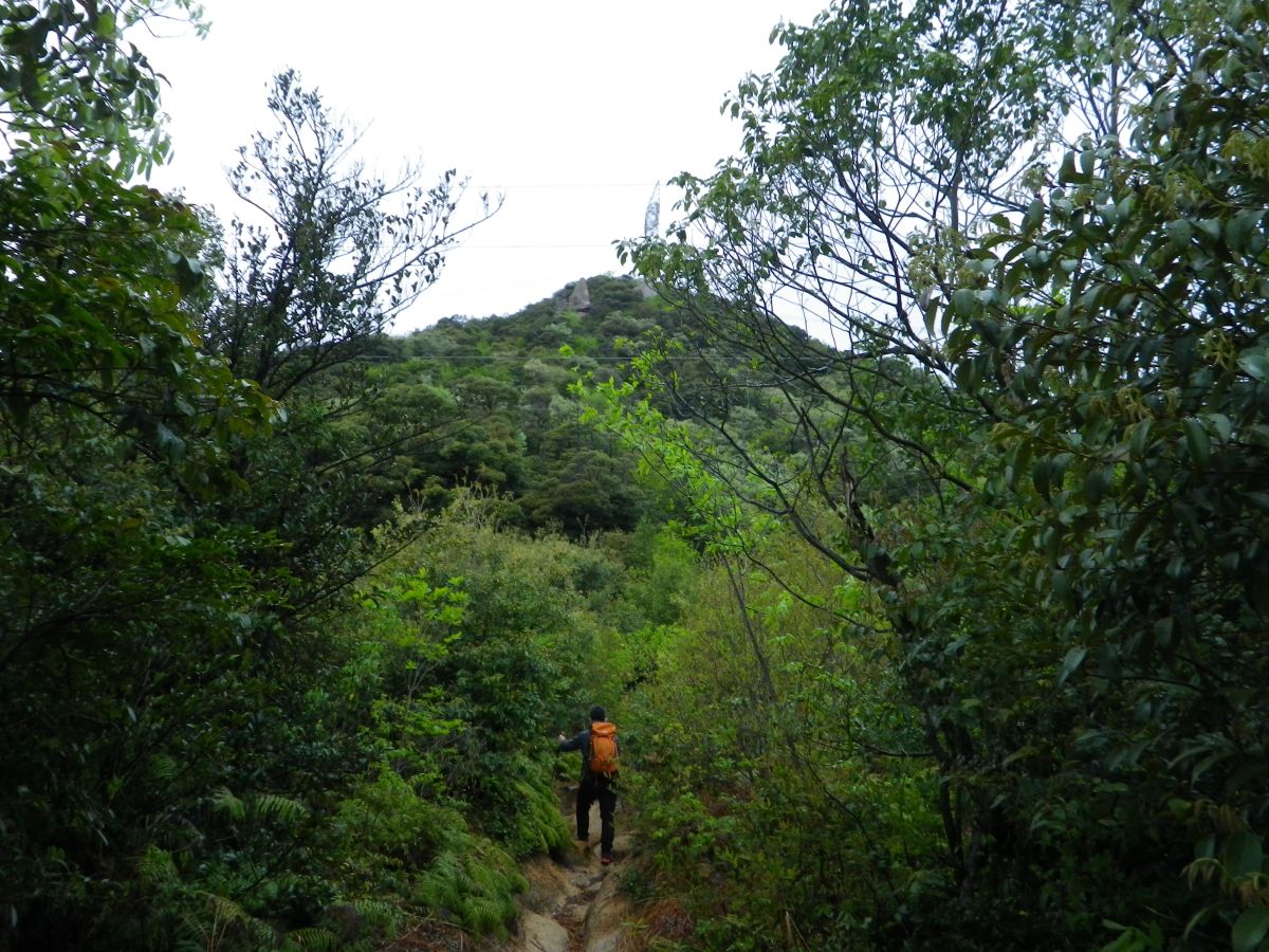 向かいに見える鉄塔までまずは登ることになる。ここで階段は終わりかと思ったらまだ続いていた