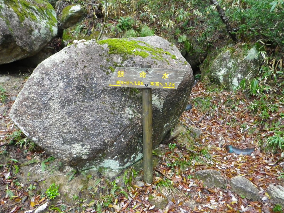 銀命水という飲めるかわからない水場があった。おそらく飲めるとは思うけどね。距離的にはここで約半分だけど標高差はまだ半分もいってないので、がんばって登らないといけない