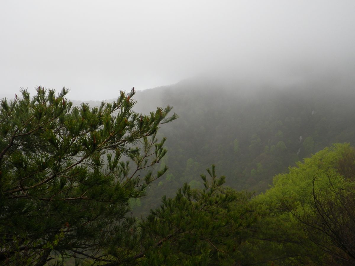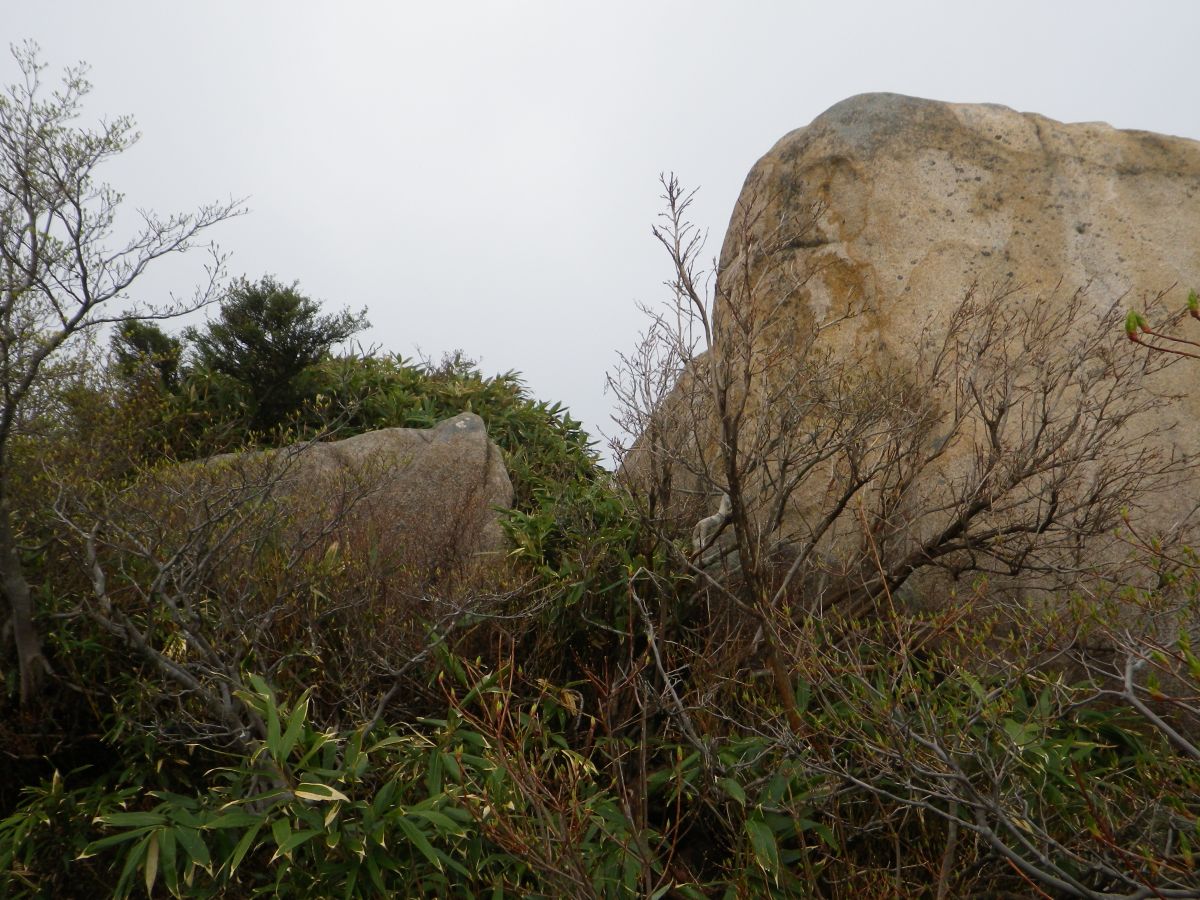 オウム岩からの展望だけど木が邪魔なのとやはりガスってるので展望はほとんどなしに等しい