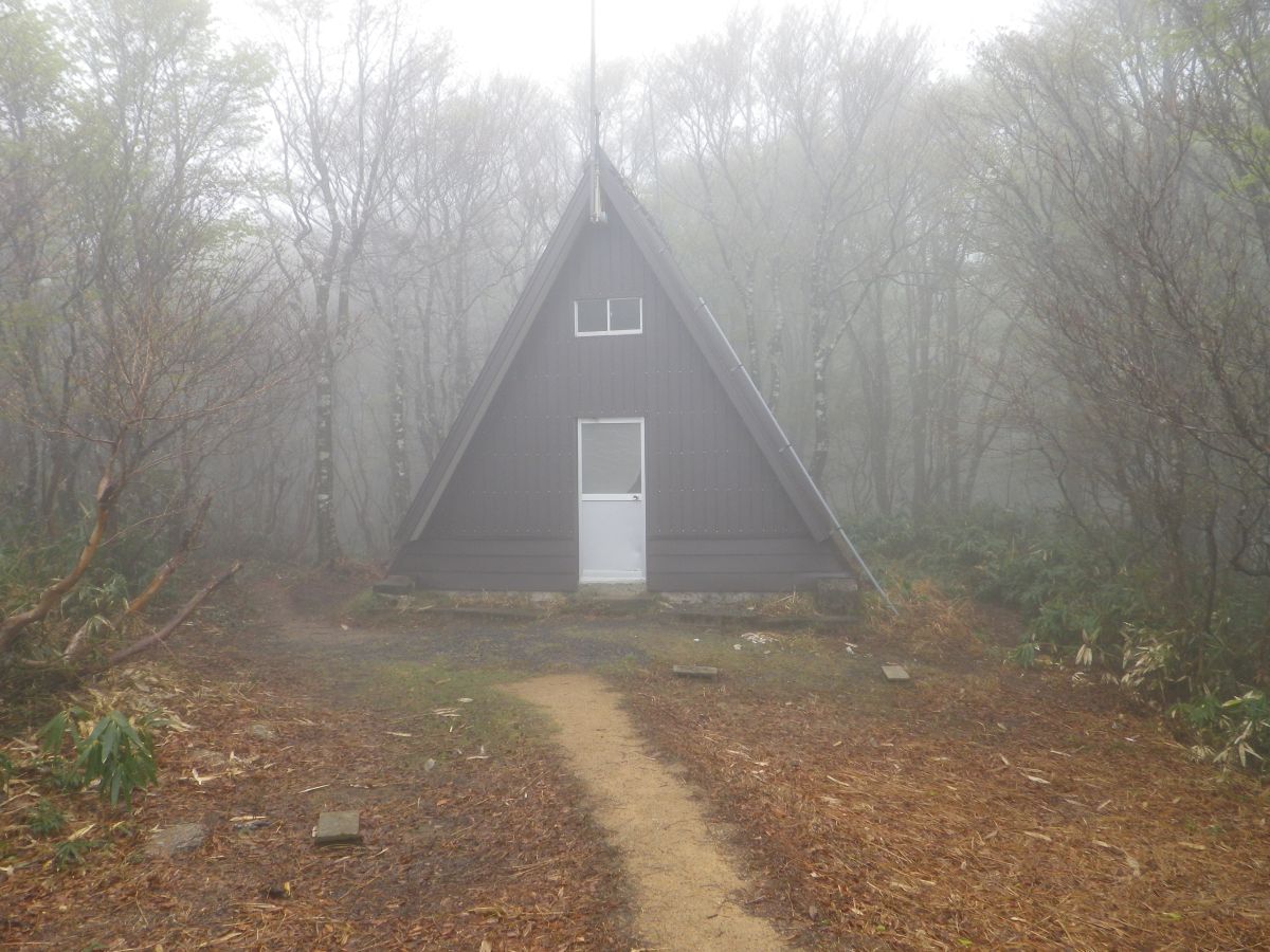 三角の避難小屋。積雪を考えてやはり入口は高くなっているようだ