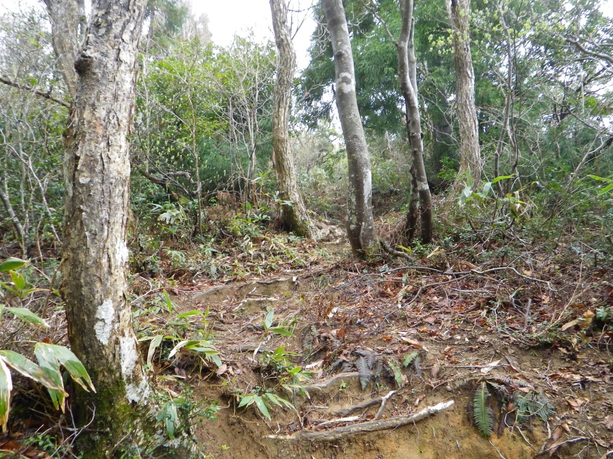 いくつかのアップダウンがあったけど、いよいよ蠑螺ヶ岳への登りになった。ここは少し急斜面になっているけど距離は短い