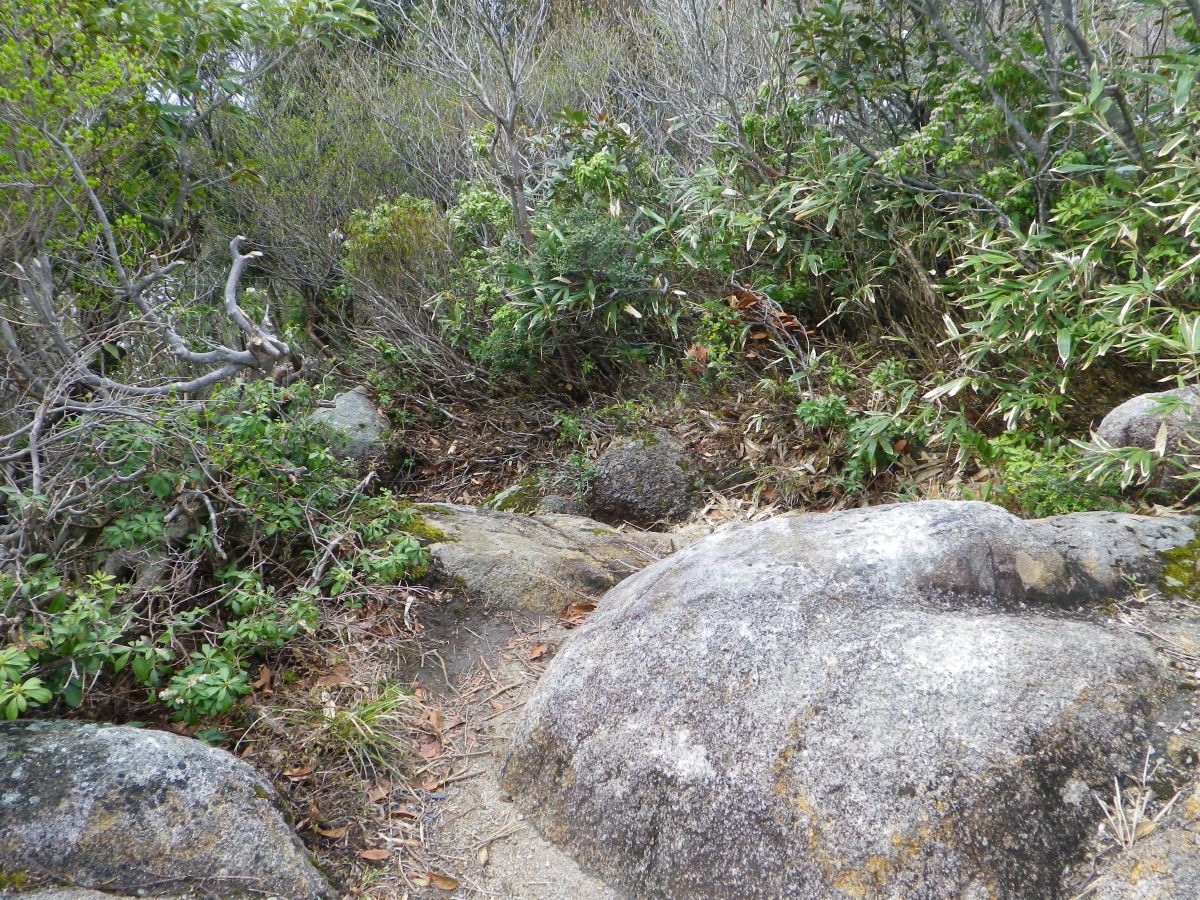 天気も晴れてきたので蠑螺ヶ岳の山頂直下にある海の見える岩へ行ってみることにした