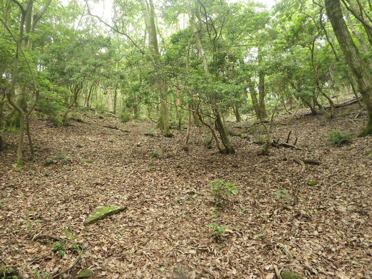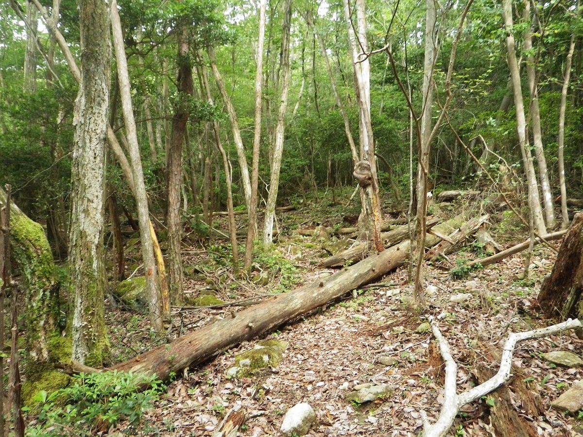 写真では伝わりにくいが、洞ヶ山の直下はかなりの急斜面になっている。下るのも大変だったけど、これを登りたくなかったんよね