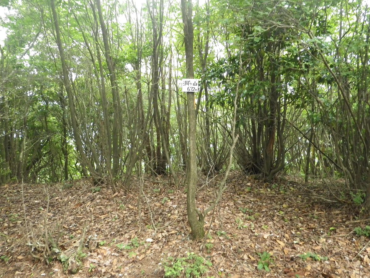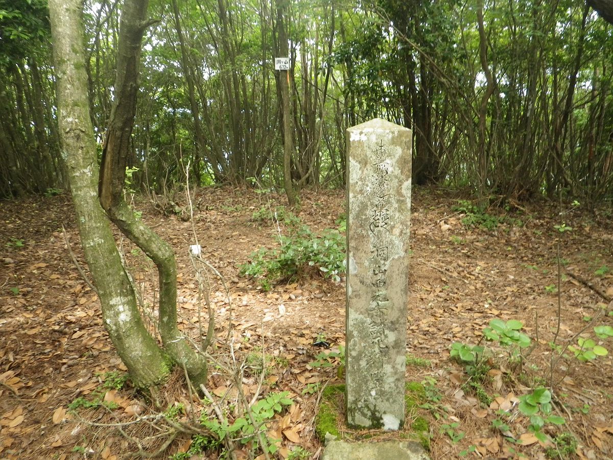 次なる目的地である洞ヶ山(672m)に到着。なんか石碑があるけど、なんだかよくわからない