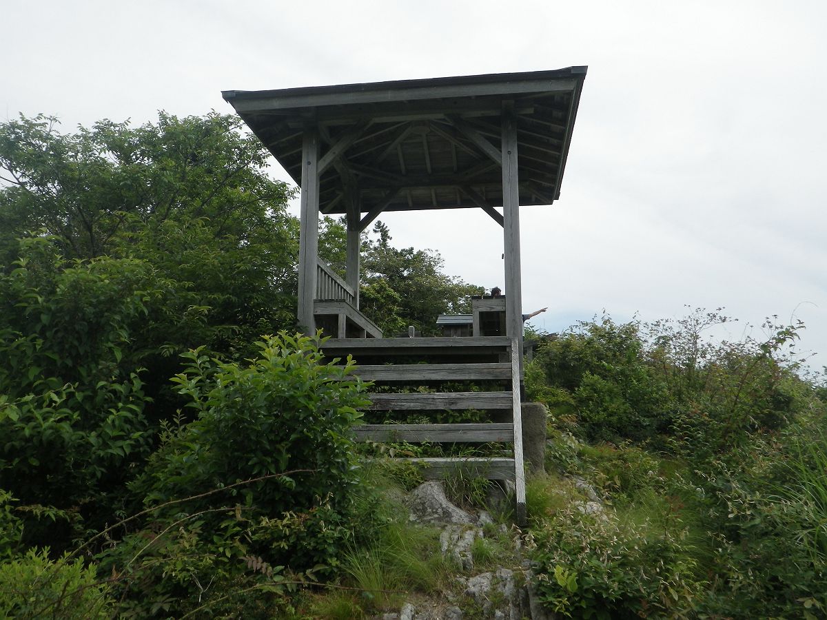 西光寺山の山頂(712.7m)に到着。立派な東屋が設置されていたが、これは展望台といえばいいのか!?