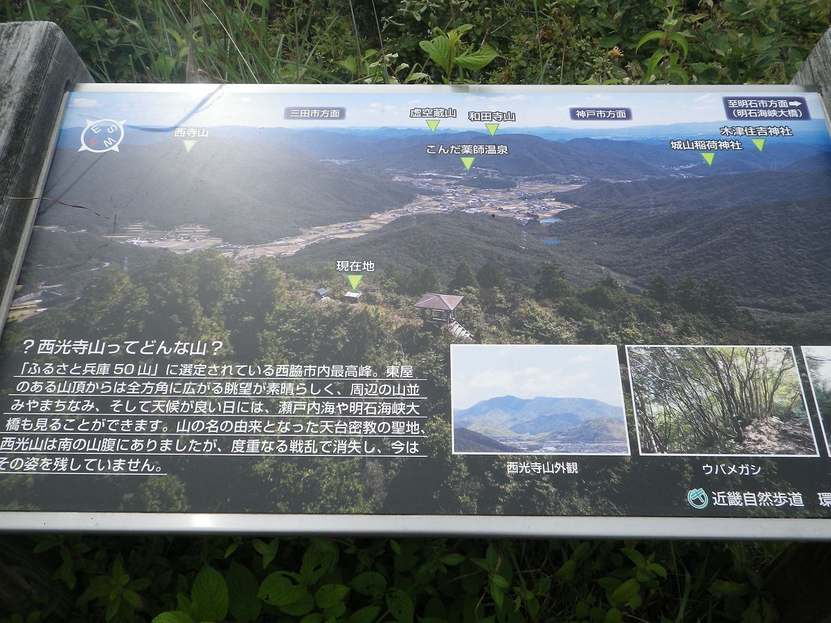 東屋の中に西光寺山(713m)のプレートがかけられていたので撮影しておいた