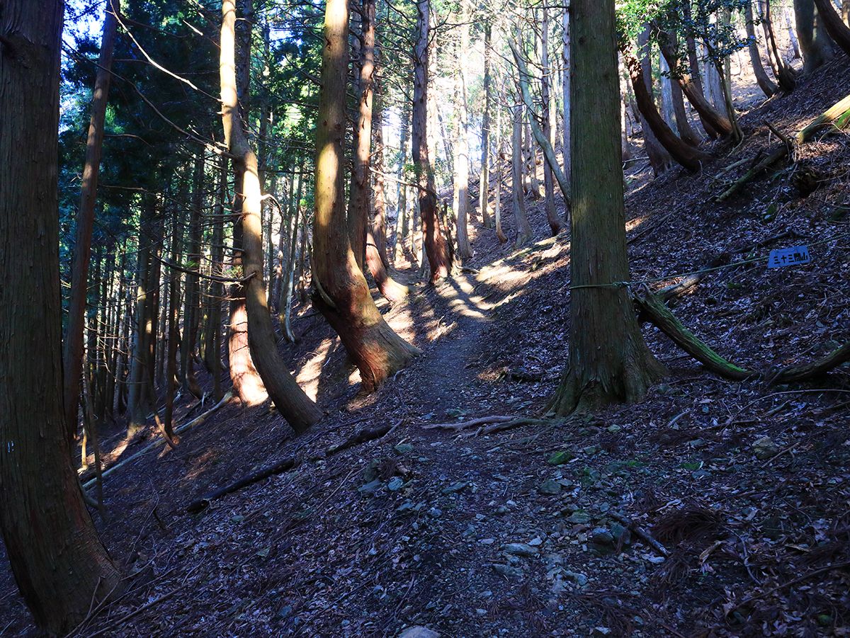 沢筋の道からはずれて尾根に出るまでつづら折れの道が続く