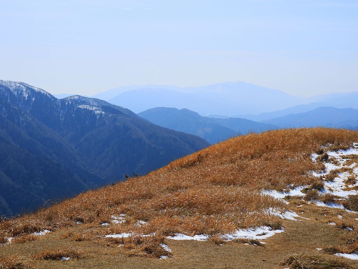 ここから展望が良くなる。右奥に見える雪のかぶった山は方角的に考えると武奈ヶ岳っぽいけどどうなんだろう!?