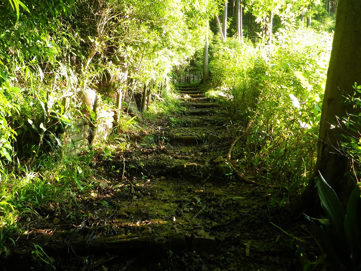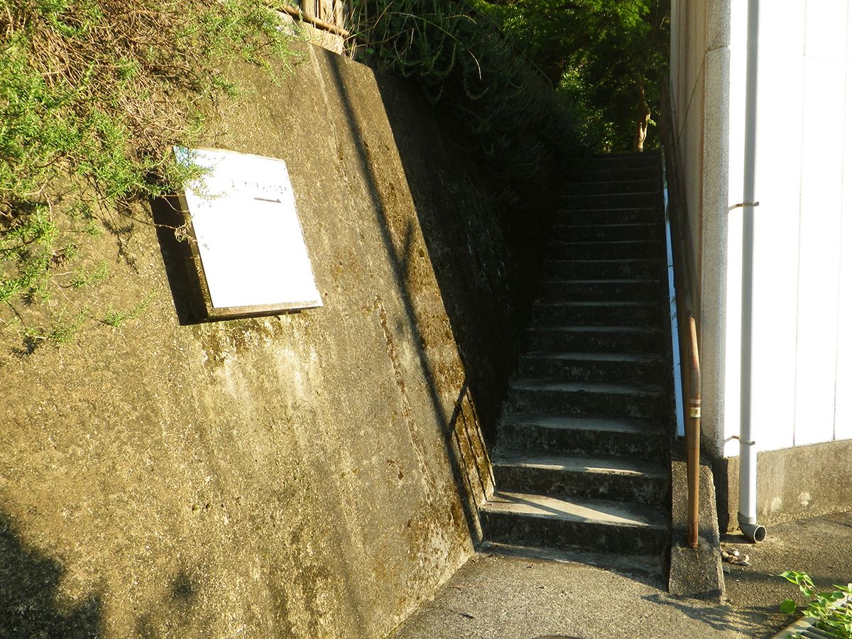 ここの細い階段を登って直進すると入山となる
