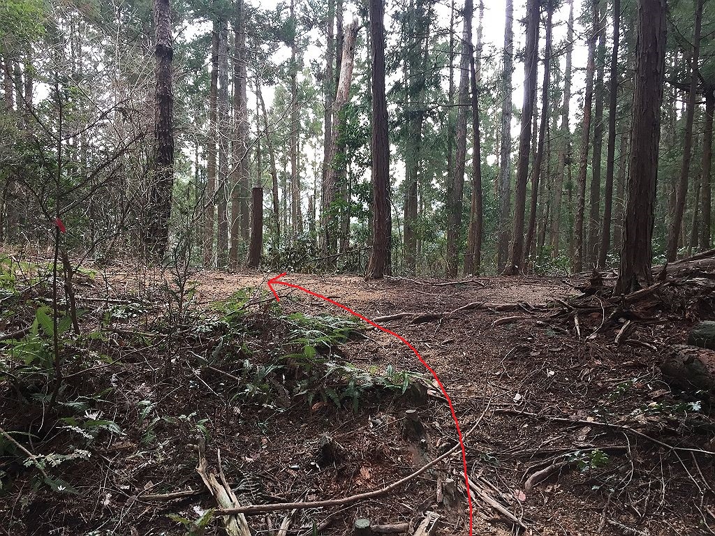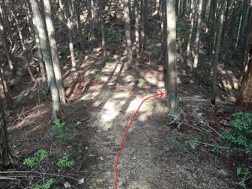 ここも直進できそうだが右へ。地図をみてみてみると直進はおそらく鬼ヶ牙へ。