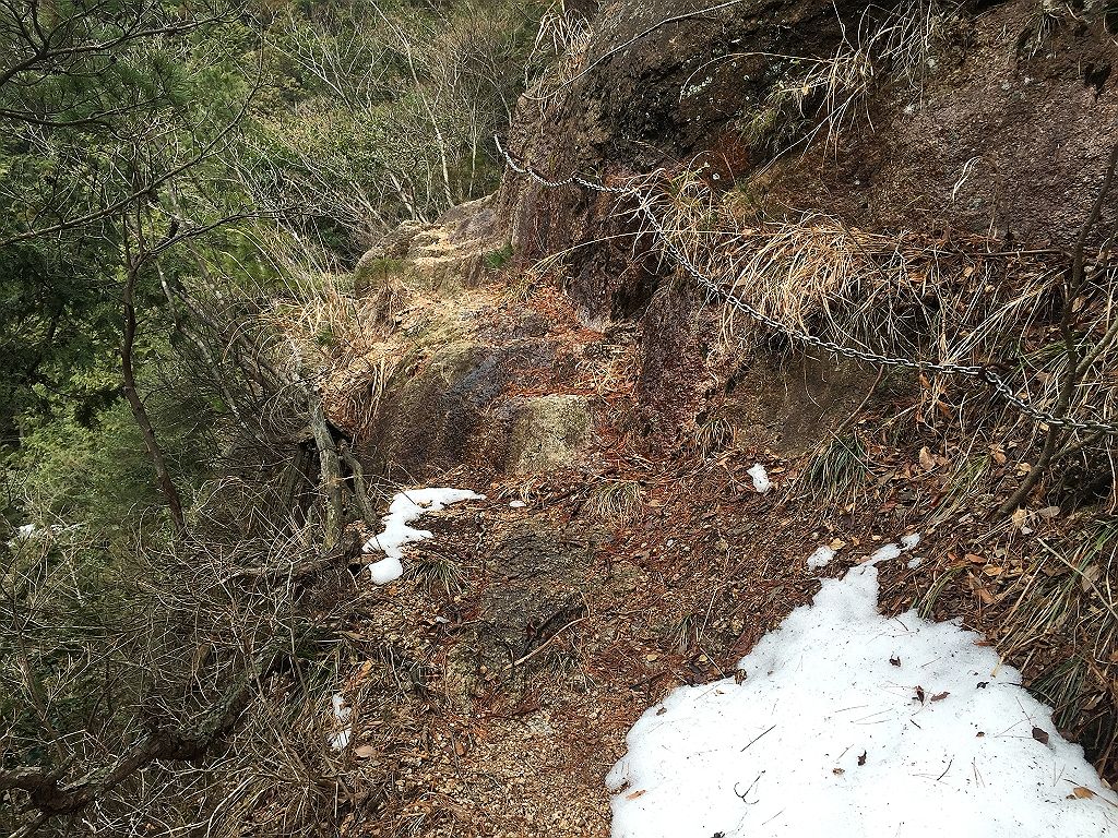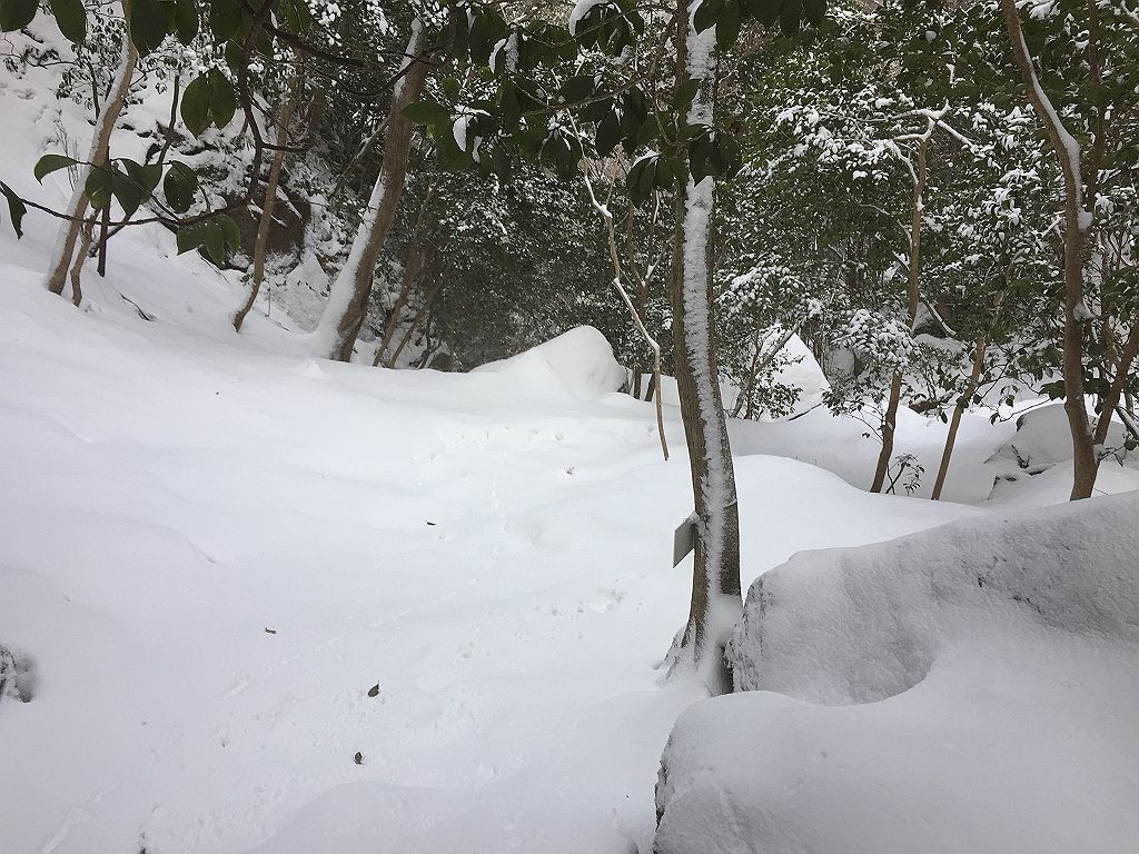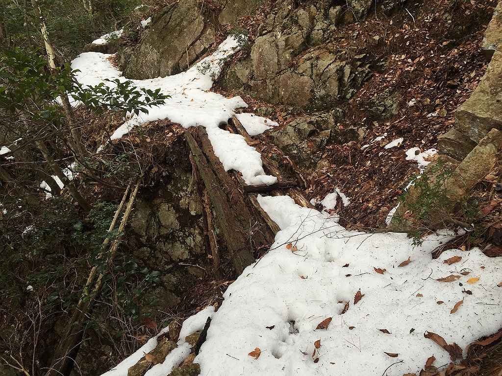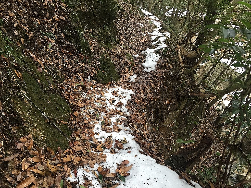 ちらほら雪道ができてたが、積雪時は滑りやすく細いので滑落に注意していた