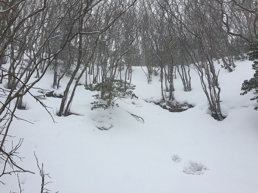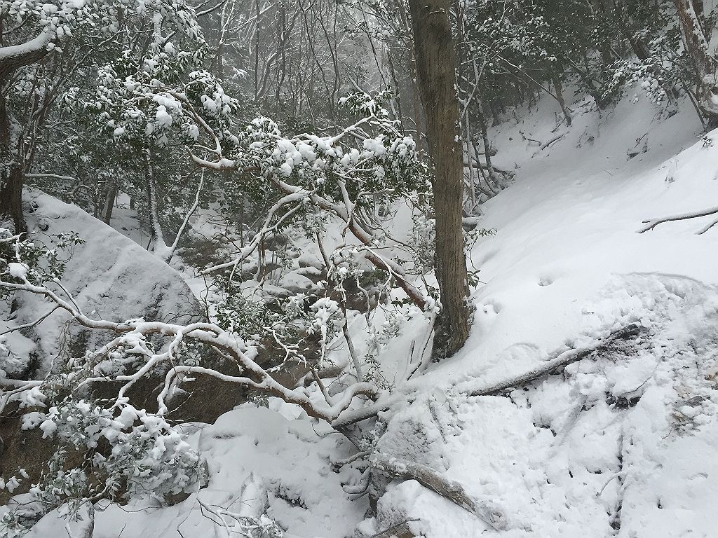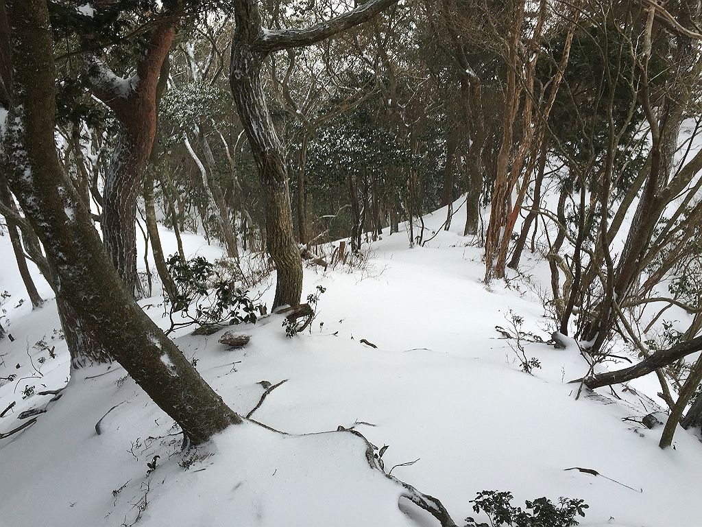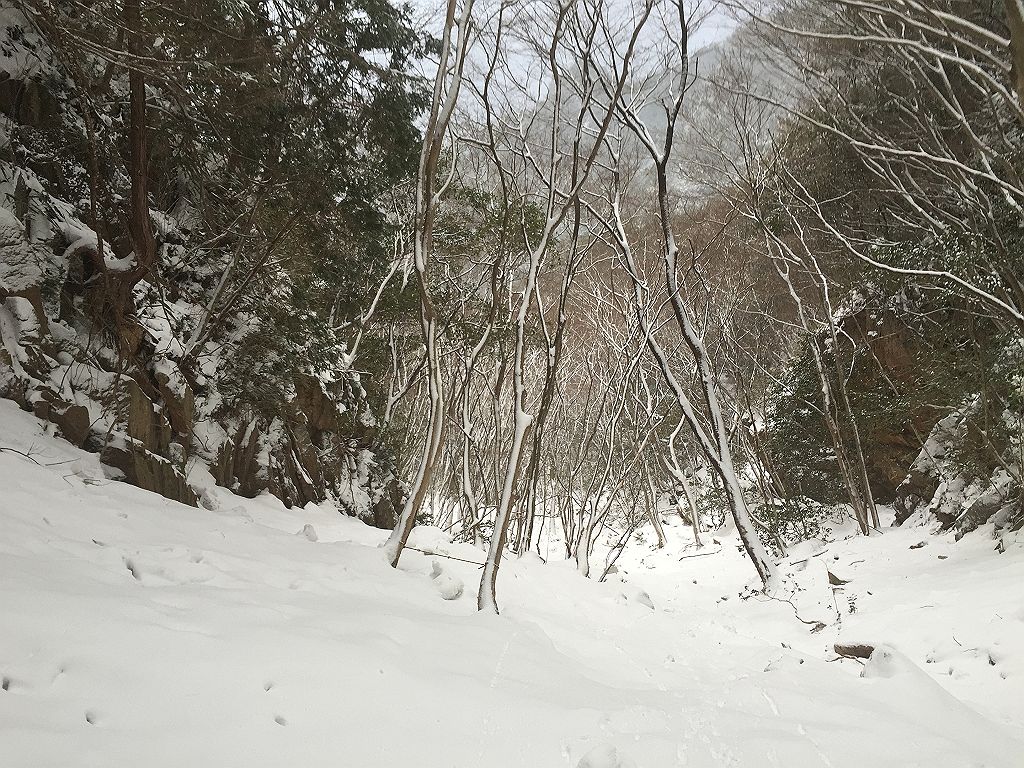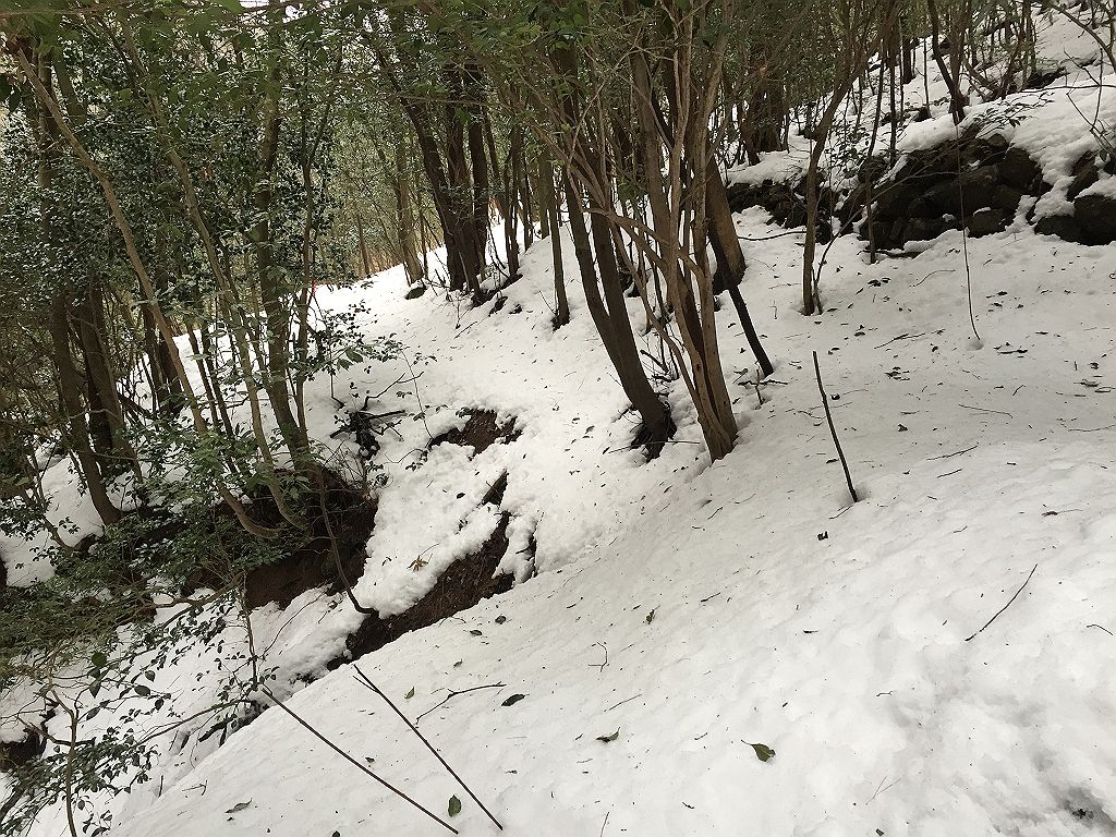 ちらほら雪道ができてたが、積雪時は滑りやすく細いので滑落に注意していた