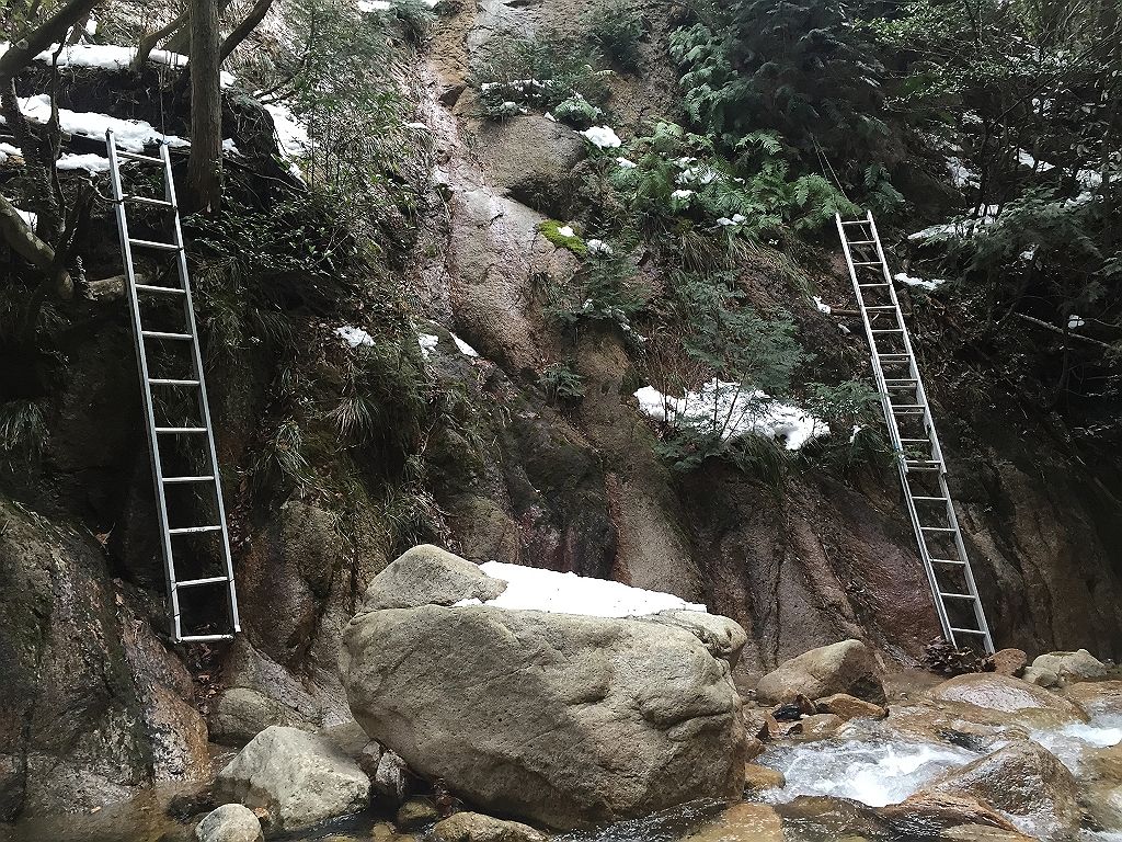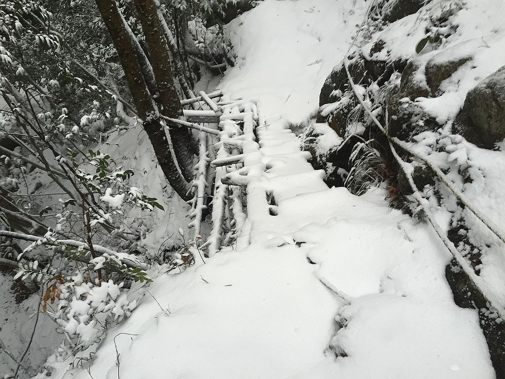 積雪なので滑落要注意だった。というか、まだアスレチック?