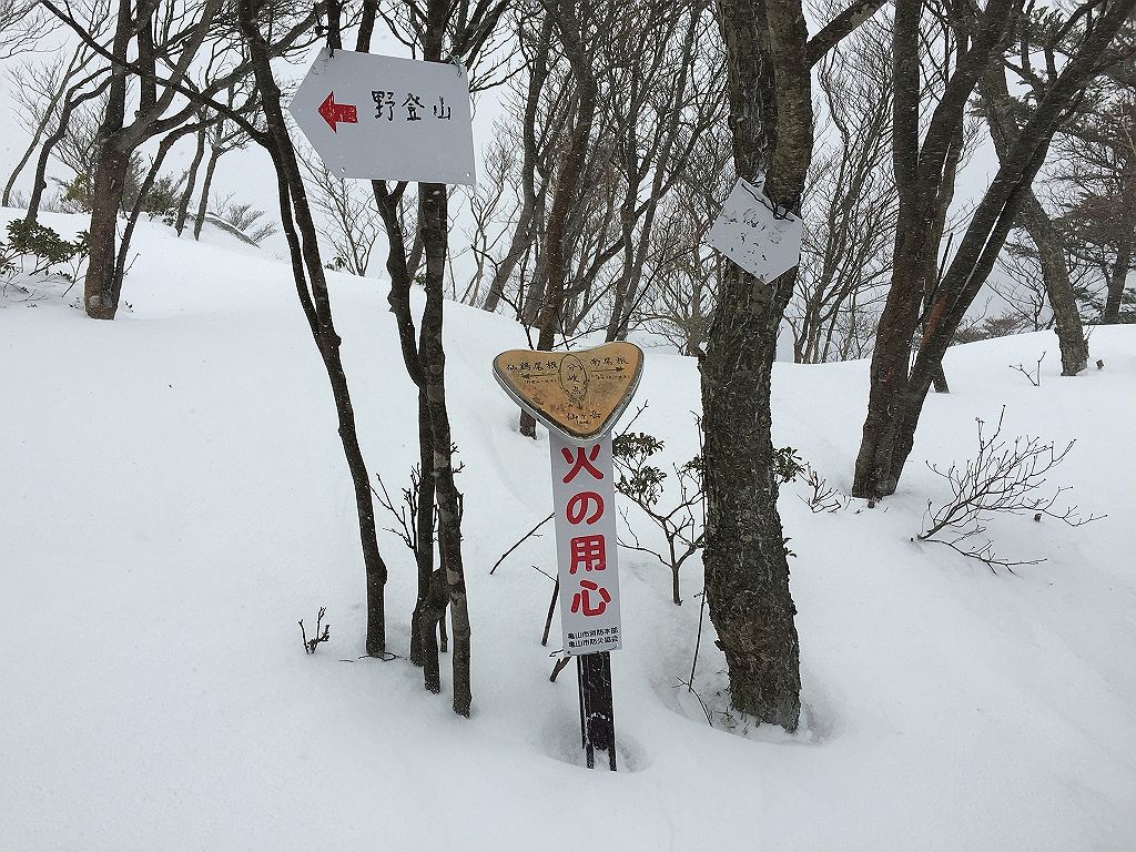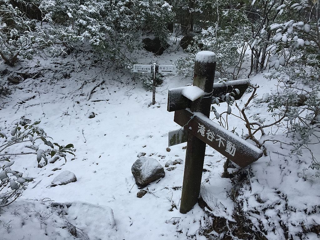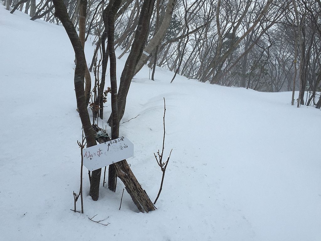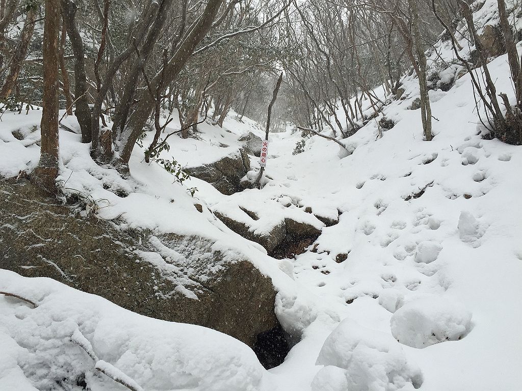 南尾根・白谷コース分岐に戻ってきた。雪が積もっていた