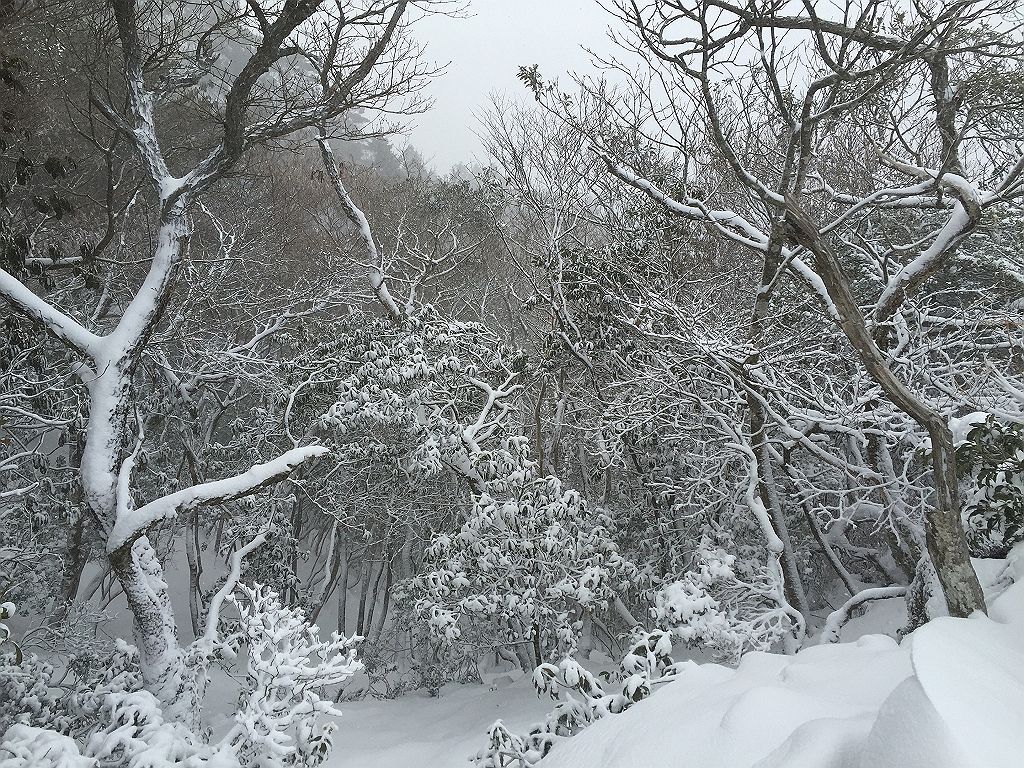 鈴鹿の南端に位置する仙ヶ岳は綺麗な沢だということで夏の沢登りの下見のためにもいってきました。沢は予想以上に綺麗でしたので、白谷ルートを歩いていると沢の景色で満喫していました。何の苦もなくストレートに行けていたルート。しかし堤防を越えてから標高750mを超えたあたりからは足がズボズボ雪にハマりだして雪も降ってきました。標高800mを超えたあたりからは足ラッセル開始。沢があるところはうまく岩を伝ってのぼれましたが、稜線が見えたあたりからは沢の水もなくなり、見えているのに着かない状態が続きました。やっと稜線についたころには汗だく。稜線は比較的歩きやすかったですが、さらに山頂手前はまた雪にハマりながらのぼりました。山頂ではかなり吹雪いてきたので撮影してさっさと撤退。そこからさっきの分岐に戻ってから東峰へ。そこからは雪がしまっていたのであまり雪にハマることはなかったですが、南尾根ルートの仙の石から樹林帯に入るまでの1時間は距離はないものの岩場の上り下りは爆風の中を歩くことになりました。やっと樹林帯に入ると爆風から開放されました。滝谷不動(分岐)で、ちょっと疲れたので大きく休憩をとることに。そこから林道まではストレートに降りていけました。今回は綺麗で神秘的な沢が見れたのと、展望は見れなかったものの、その分、幻想的な雪景色も見れたのでよかったです。ちょい波乱万丈な山行になりましたが、これもいい経験になりました。