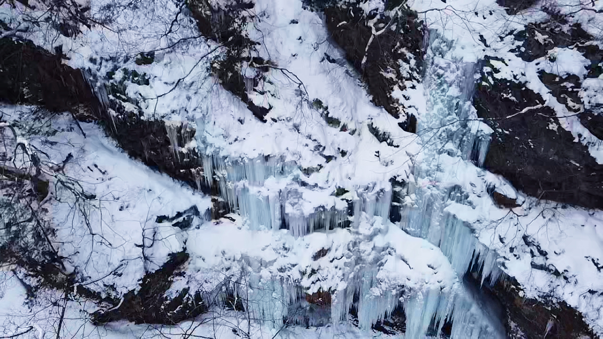 上のほうは下からよく見えなかったけど結構凍っているみたいだった