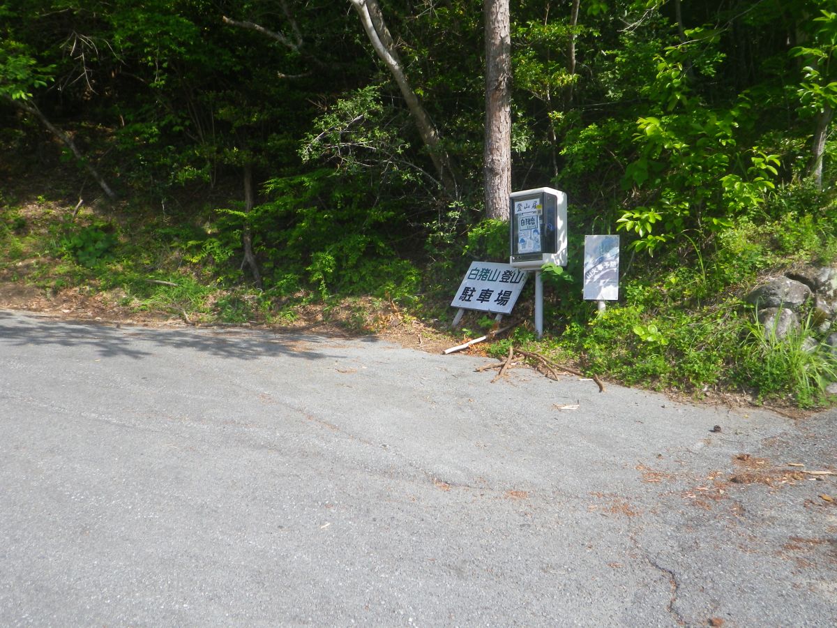 ここで白猪山山頂への近道があった。少しはコンクリの道を回避できるので左の近道を登っていった