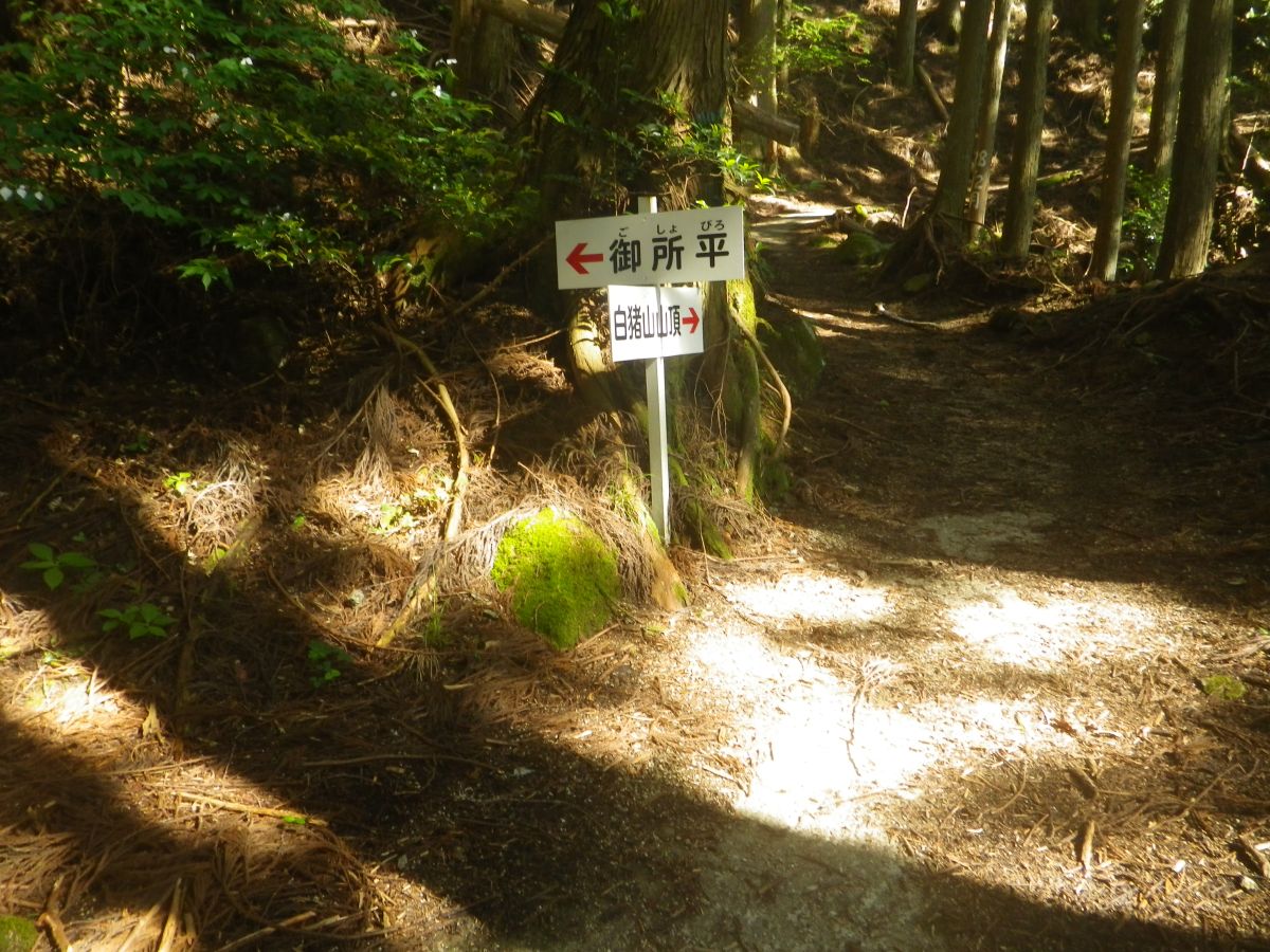 御所平分岐だけど、御所平って何かよくわからない。スルーしてそのまま白猪山山頂を目指して登っていく