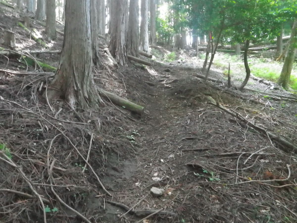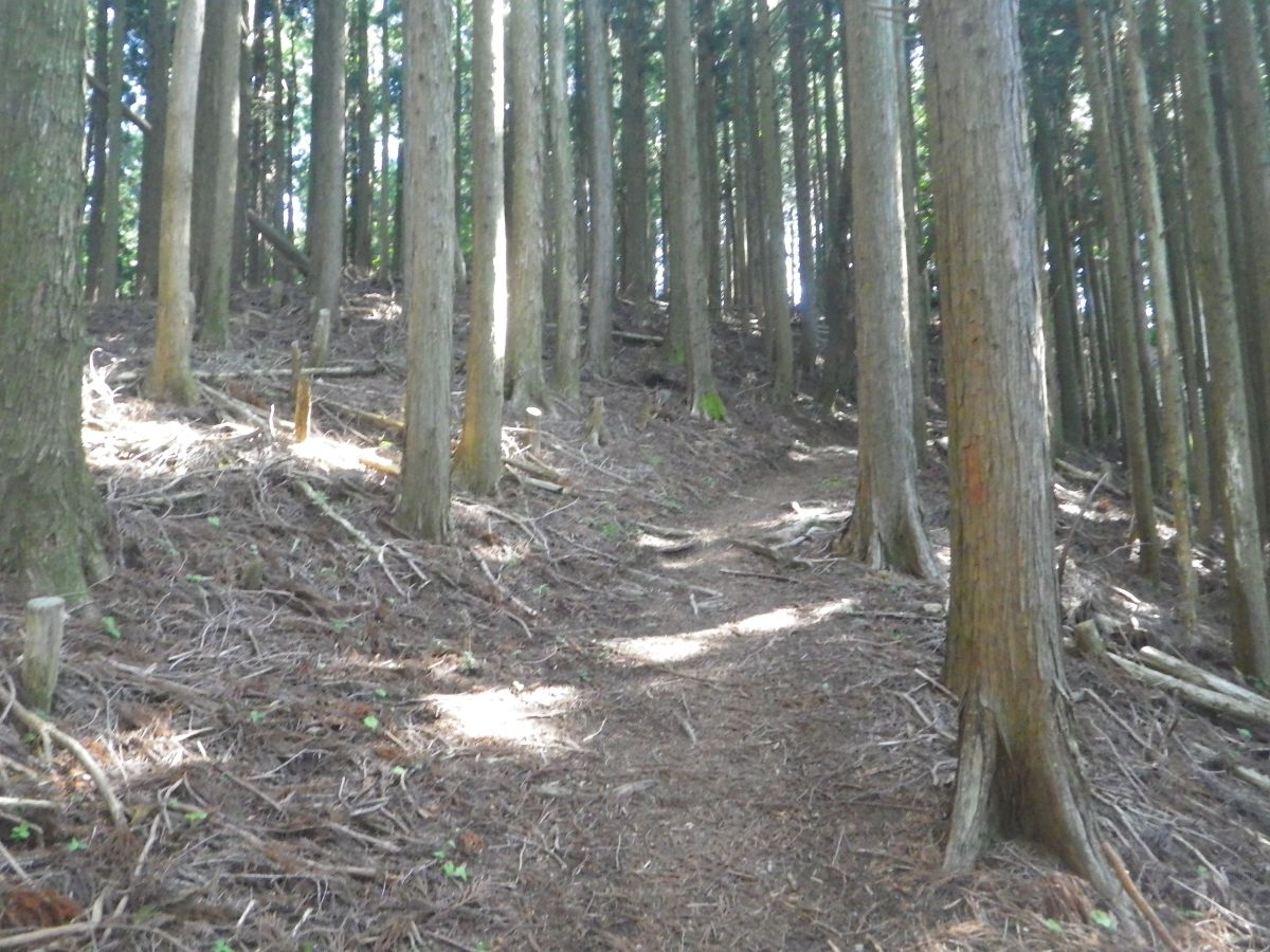コンクリ尾根道の急登が終わるとやっと土の道になって、斜面もなだらかになった