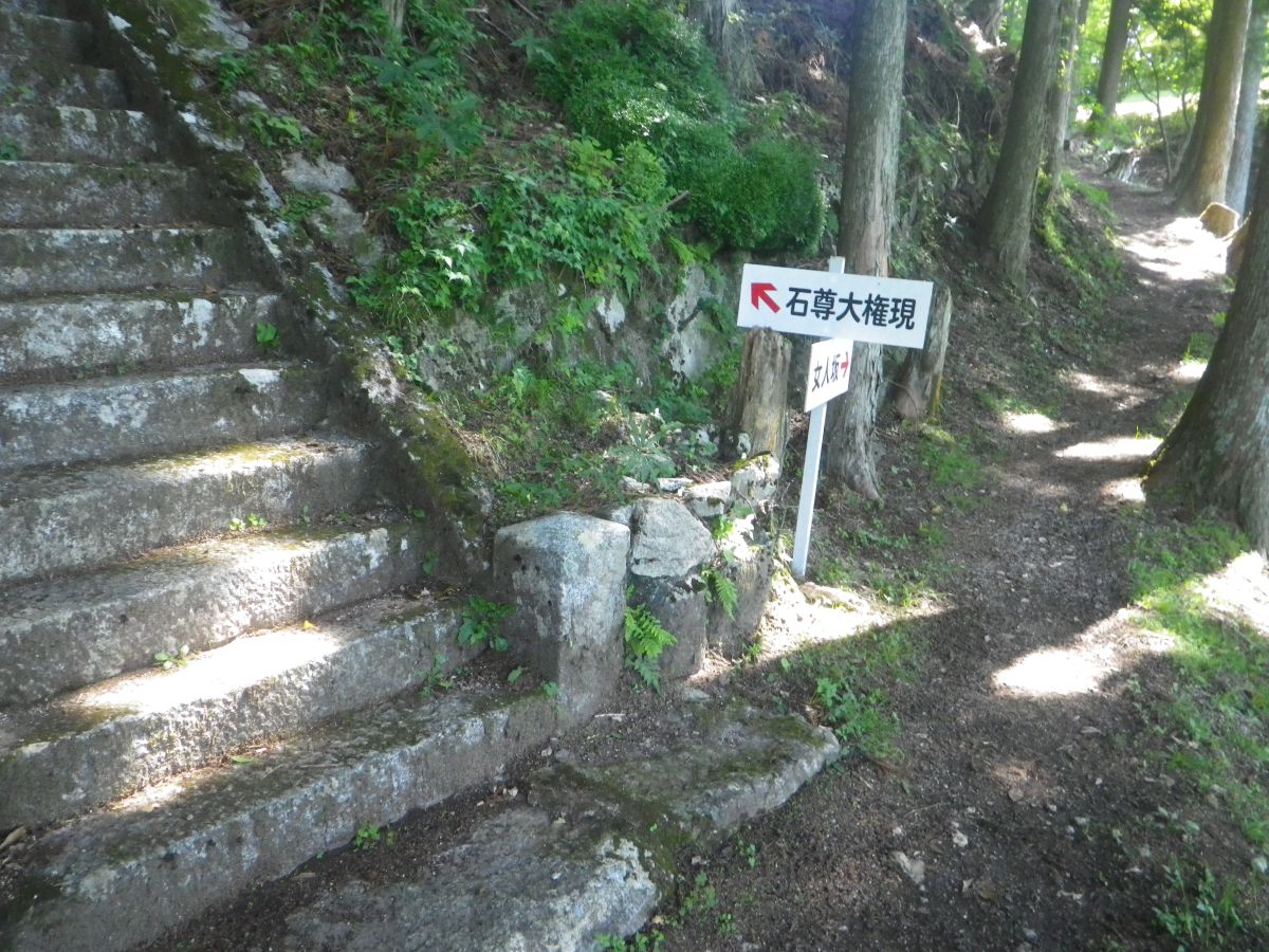 土の道になってすぐに石尊大権現に到着した。せっかくなので階段を登って立ち寄ることにした