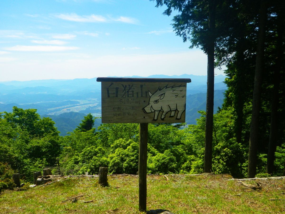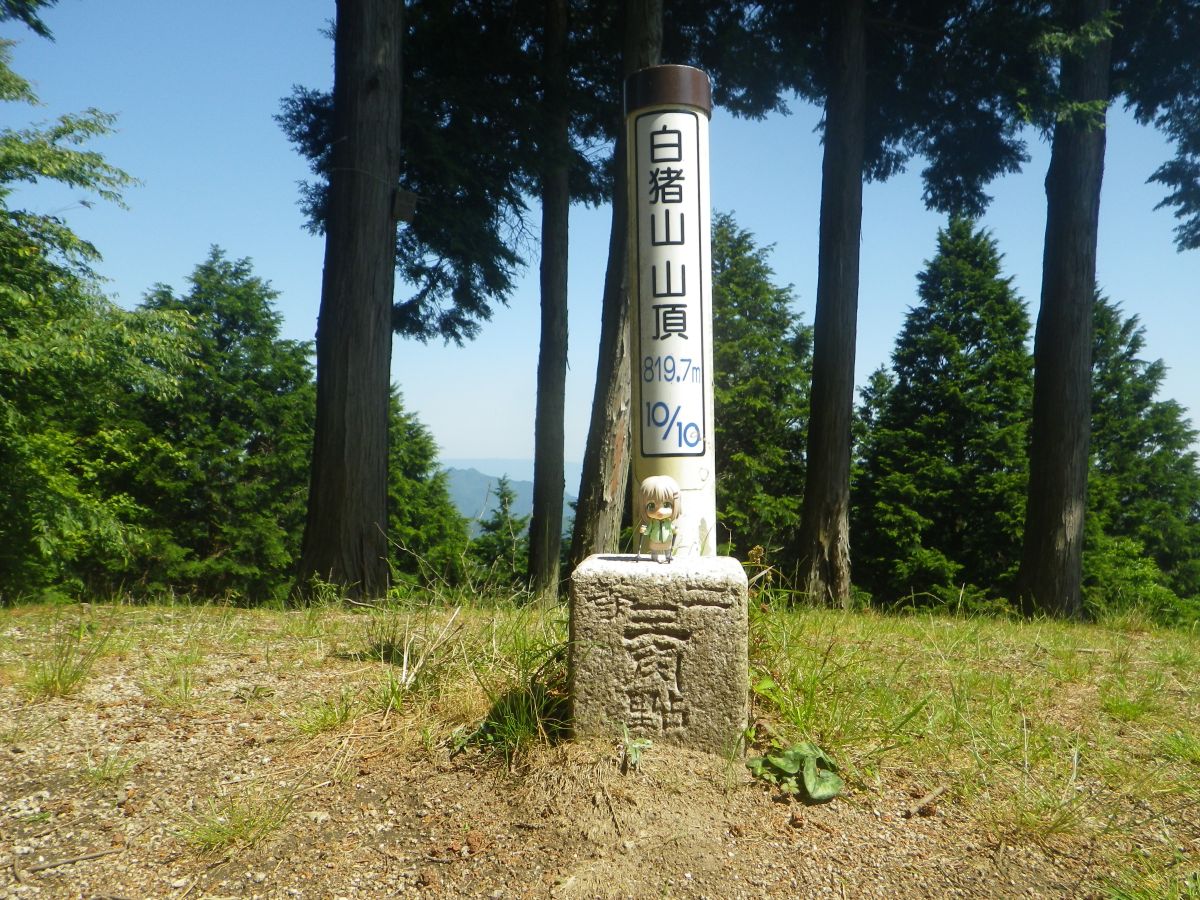 白猪山山頂(819.7m)に到着。山頂には一人だけ登山者に会ったけどすぐに下山していって独占できた