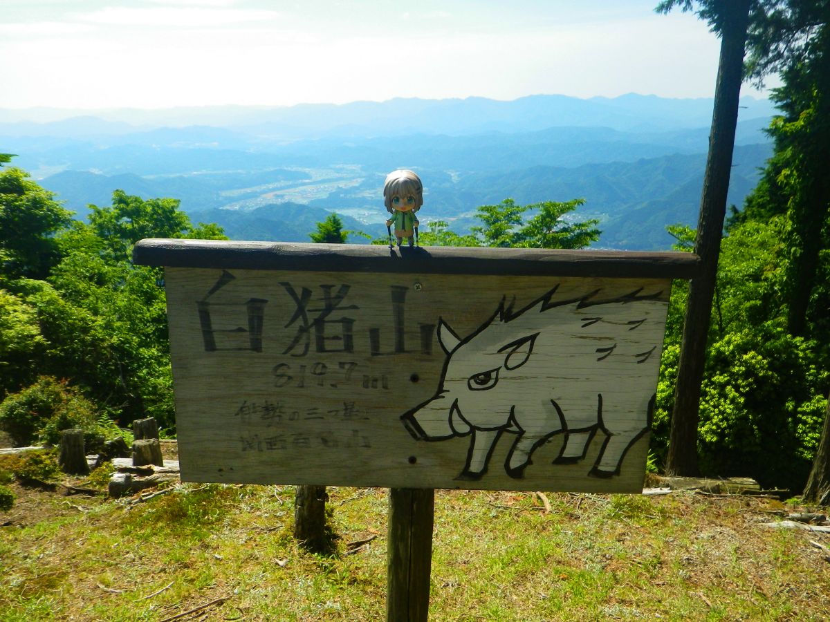 三角点と雪村あおいちゃんも一応撮影しておいた。やっぱり白い猪の絵が書いてる看板のほうがいいかもしれない