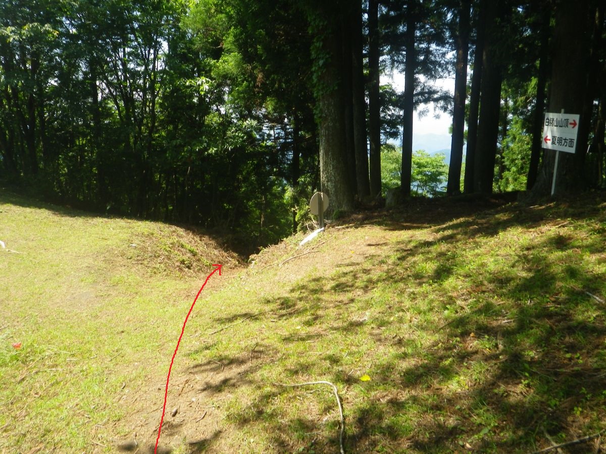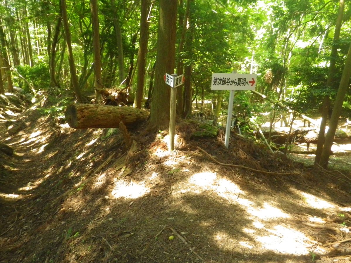 ここで矢下分岐。下山時は右側から出てくるはず。まずは真っすぐ夏明コースで登っていく