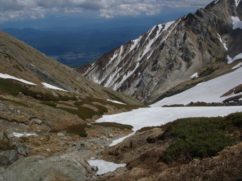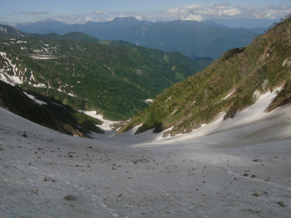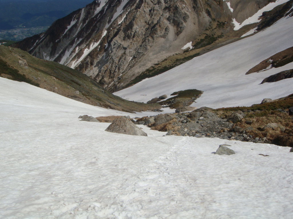 大雪渓の滑走は見えているのになかなか着かない感じで長かった。最後は足が痛くなってきた