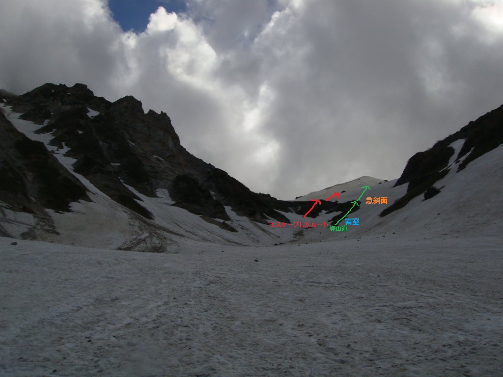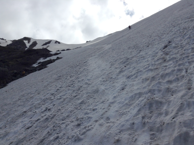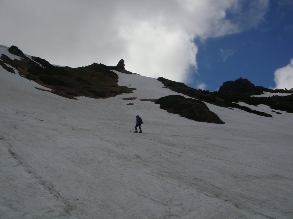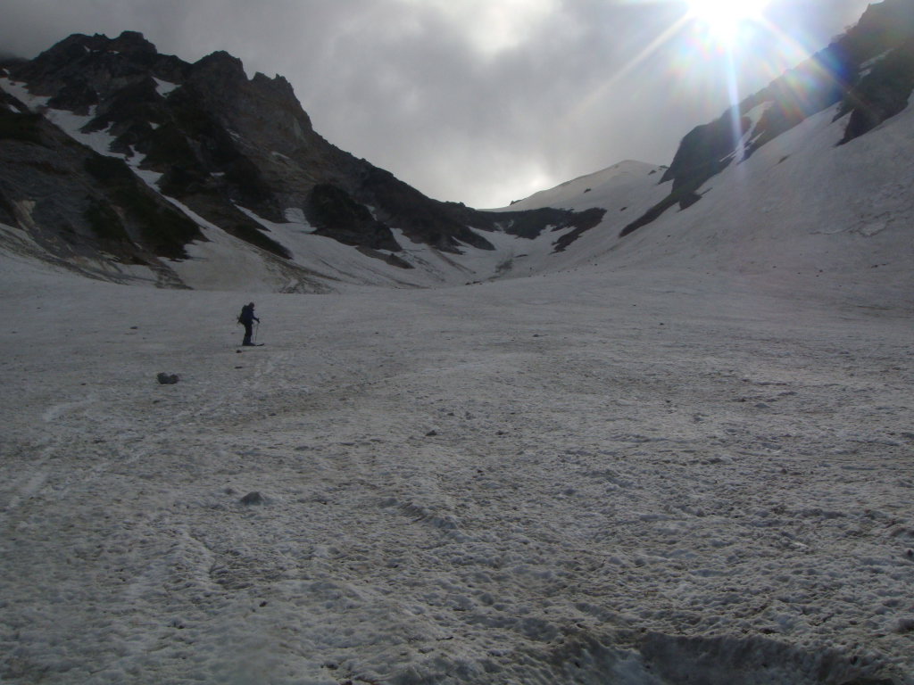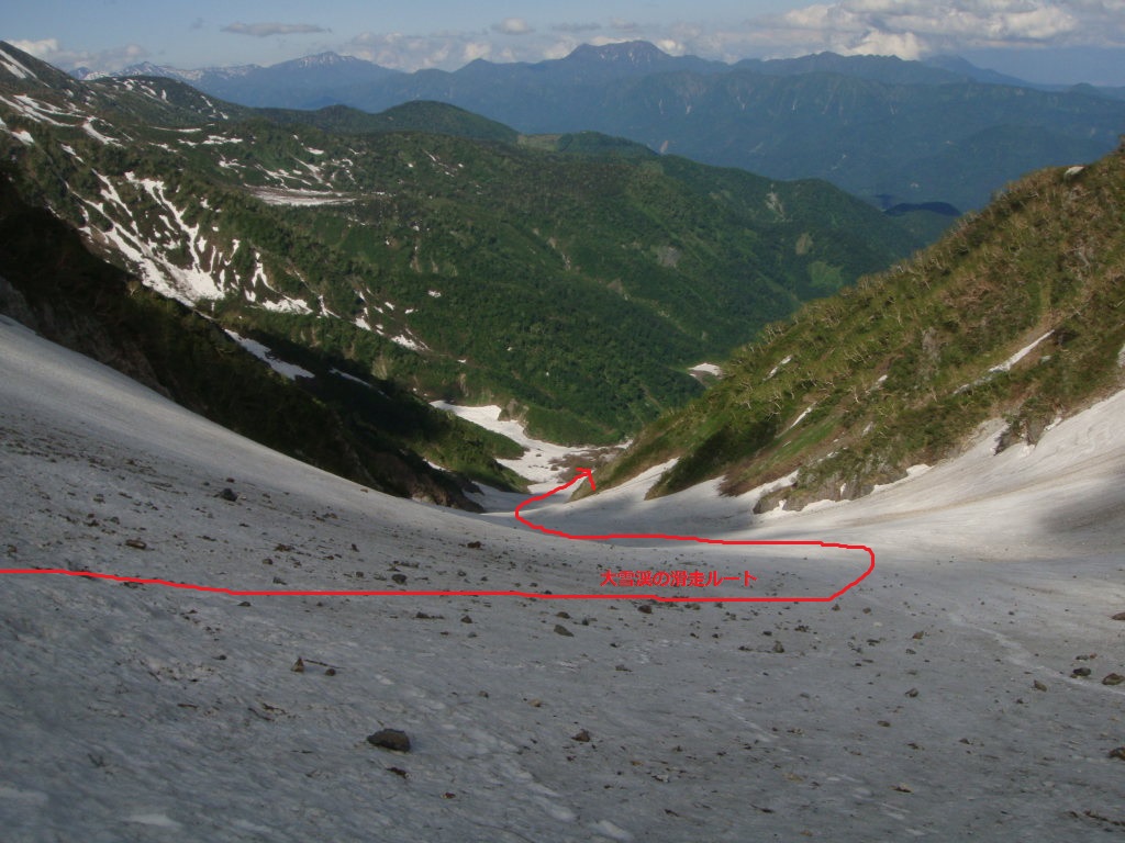 さあ、ここから大雪渓を滑走する
