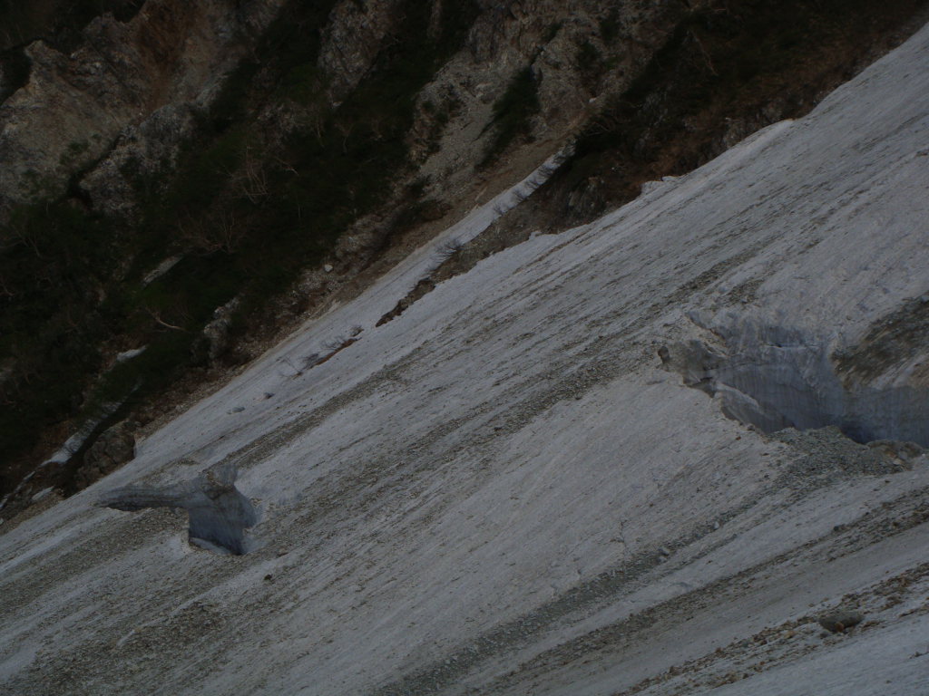 ズームしたがすごいクレバスがあった。落ちたらひとたまりもなさそう