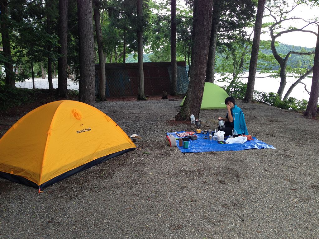 青木湖の湖畔でテント泊