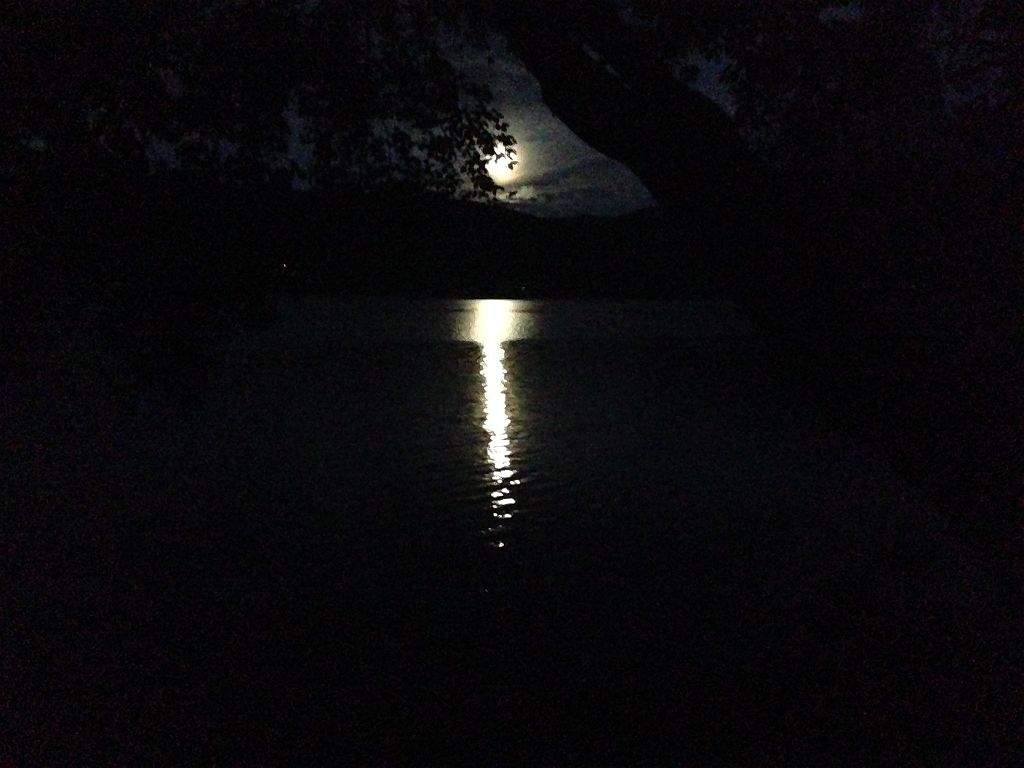 青木湖に映る月明かりが幻想的