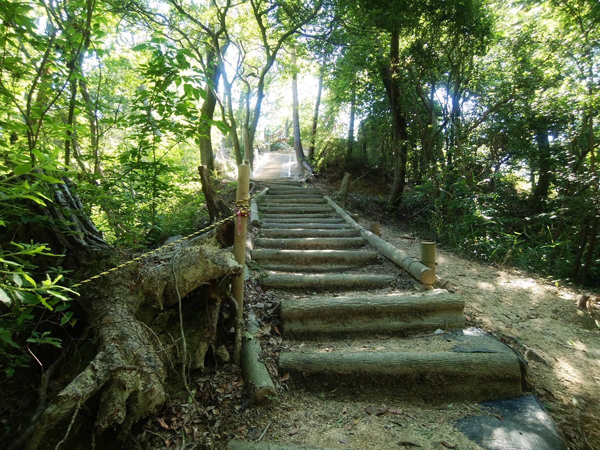この階段を登ったところがくろんど園地の最標高点のはず